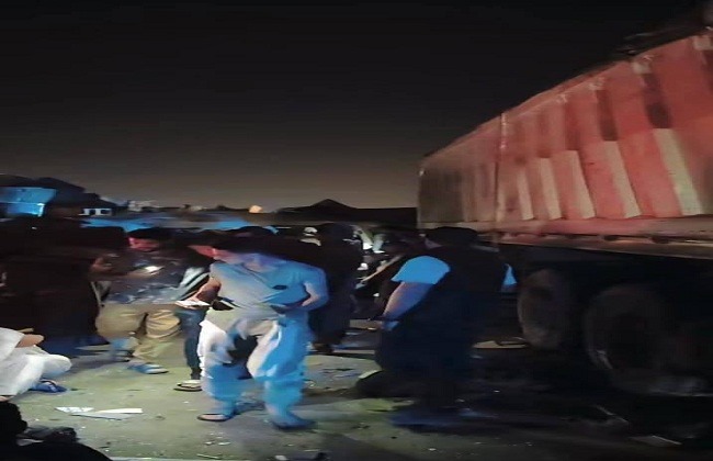 في ساعات الفجر الأولى توقف طريق السويس الصحراوي عن السير بسبب حادث تصادم مروع بين تريلا محملة بسيارات وأوتوبيس و11 سيارة ملاكي راح ضحيتها 44 شخصا ما بين وفاة واصابة.