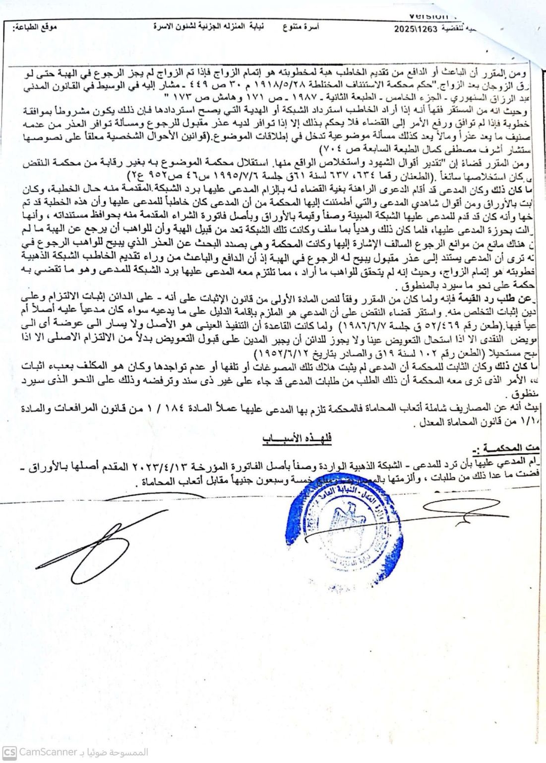 أكدت محكمة المنزلة الكلية لشؤون الأسرة (نفس) أن الشبكة المقدمة أثناء الخطبة تعد هبة معلقة على إتمام الزواج، ويجوز استردادها عند فسخ الخطبة إذا ثبت تقديمها على سبيل التمهيد للزواج، وأكدت أيضا أن اختصاص محاكم الأسرة بنظر الدعوى لا يغير من طبيعتها المدنية ولا من خضوعها لأحكام الهبة في القانون المدني.