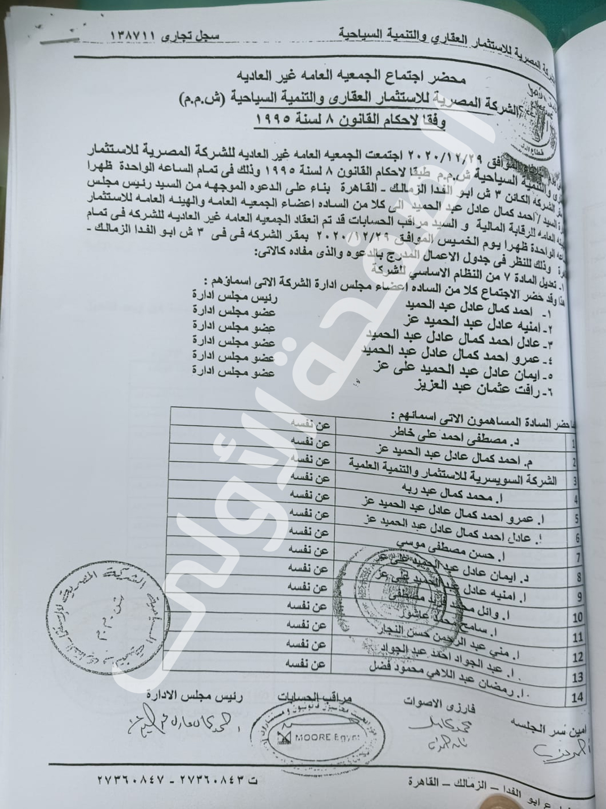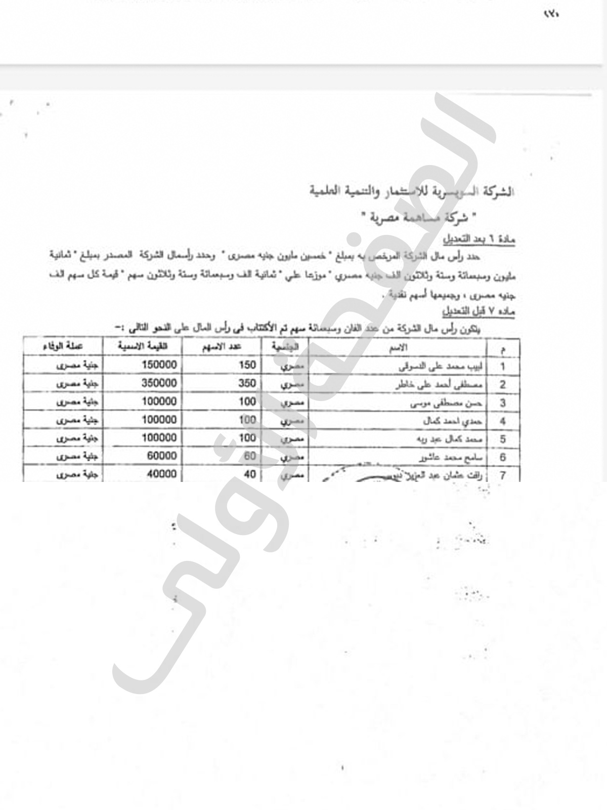 وثبت من التحقيقات أن المتهم نجل الوزير الاسبق لم يقم فقط بتزوير توقيع والده الوزير المتوفى منذ سنوات وإثباته على انه حاضر بل قام بالتوقيع نيابة عن أكثر من مساهم متوفى مثل وائل محمد فريد و طارق صلاح الدين و سعاد عبدالعال مكاوى وتم ذلك فى أكثر من محضر جمعية عمومية وليس محضر واحد .