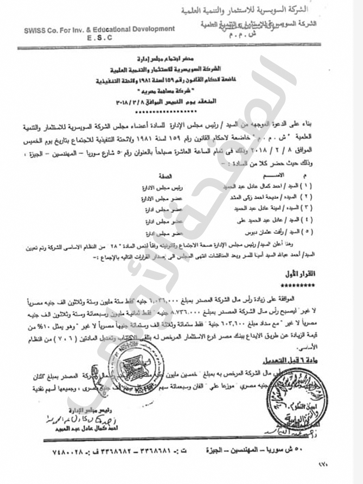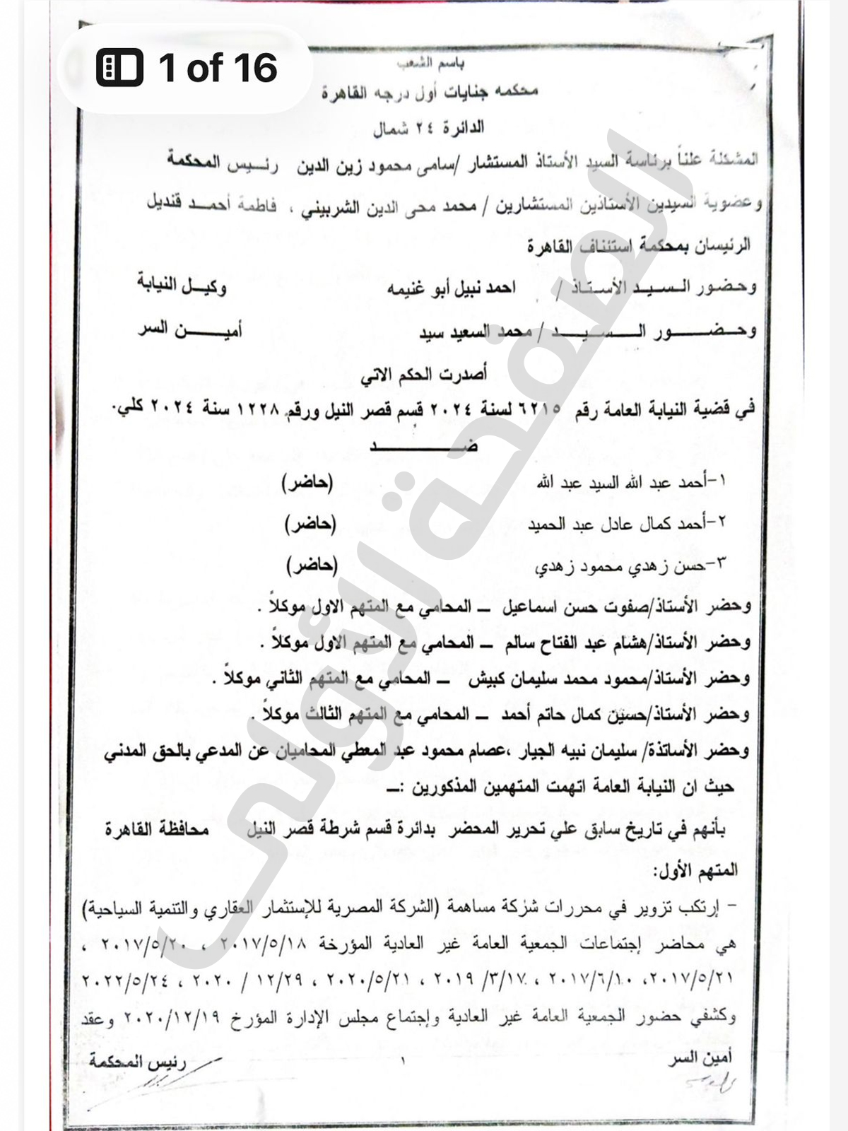 وتبين من حيثيات الحكم الذى حصلت الصفحة الاولى على نسخة منه ان المتهمين تلاعبو فى ثمانى محاضر إجتماعات للجمعية العامة غير العادية الخاصة بالشركة الاولى خلال أعوام " 2017 – 2019 – 2020 – 2022" بالاضافة الى تزوير كشفى حضور الجمعية العامة و اجتماع مجلس الادارة بتاريخ 29 ديسمبر 2020 و كذلك عقد تعديل النظام الاساسى للشركة بنفس التاريخ .. وتبين أن التوقيعات المثبته فى المحاضر تخص والده الوزير رغم وفاته عام 2010 بالاضافة الى التوقيع بدلاً من شقيقته "امنية" دون علمها.