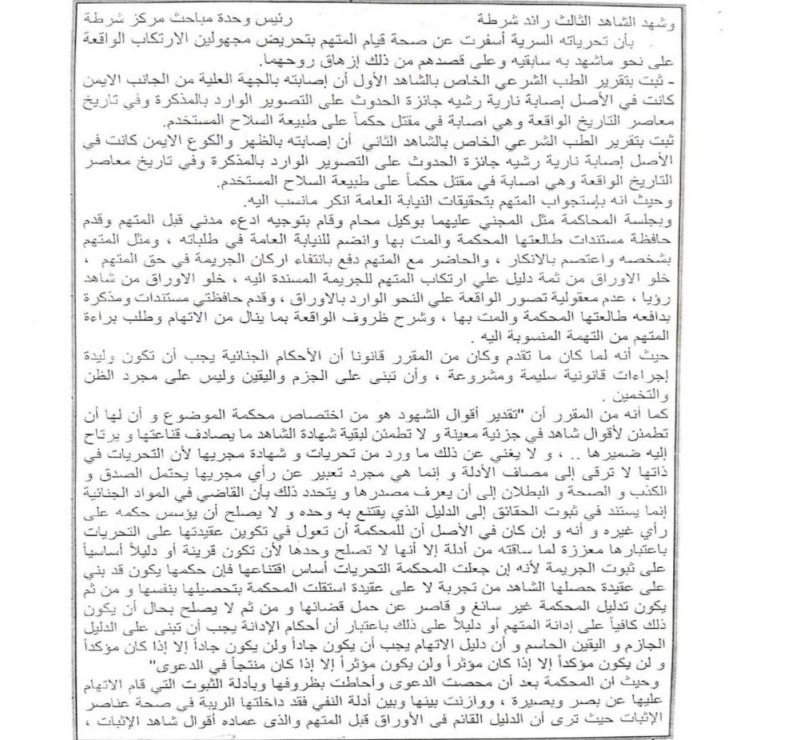 أما القاعدة القانونية التي أقامت عليها المحكمة قضاءها، فتمثلت في أن الأحكام الجنائية يجب أن تبنى على الجزم واليقين لا على الظن والاحتمال، وأن التحريات لا تُعد دليلاً بذاتها، بل مجرد رأي لمجريها، ولا يجوز أن تكون أساسًا للإدانة ما لم تؤيدها أدلة أخرى يقينية المصدر. وأضافت المحكمة، أنه متى شكت في صحة الدليل، وجب القضاء بالبراءة عملاً بمبدأ الشك يُفسر لمصلحة المتهم وقرينة الأصل في البراءة.