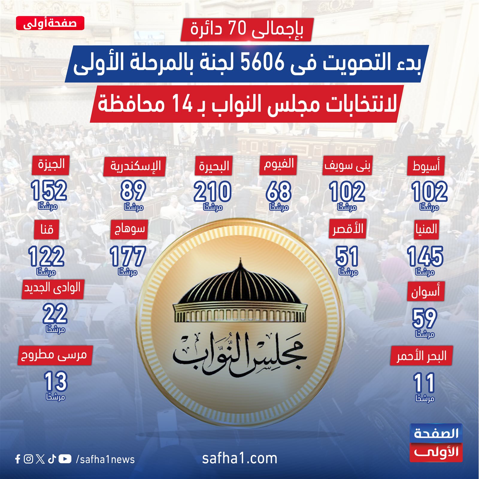 وسط إجراءات أمنية مشددة، انطلقت اليوم الإثنين، المرحلة الأولى لانتخابات مجلس النواب 2025، فى 14 محافظة والتى تضم نحو 35 مليونا و279 ألفا و922 ناخبا، مقسمين على 70 دائرة انتخابية.