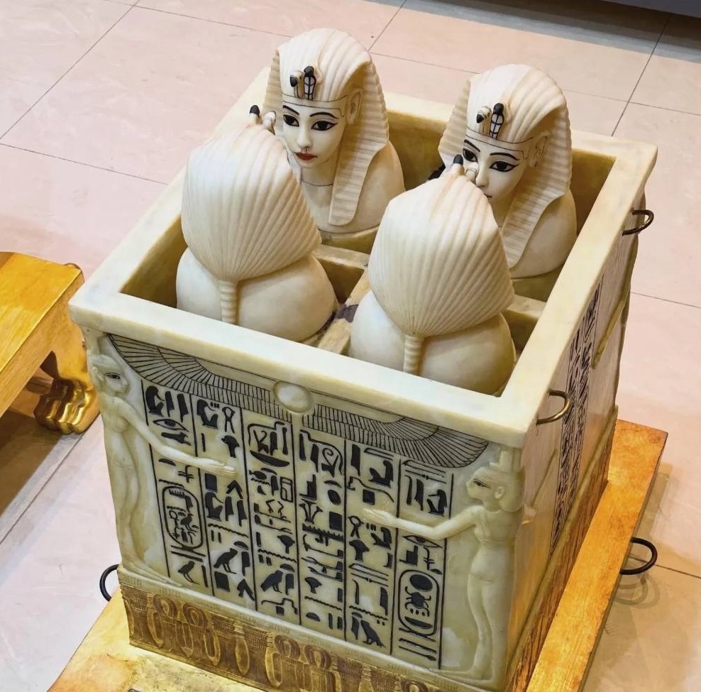 كما يعرض الفنان المصري نسخة دقيقة من رأس الملك توت على هيئة الإله نفرتم بسعر 3 آلاف دولار، ما يعادل 140 ألف جنيه، وصندوقًا كانوبيًا بالحجم الأصلي مقابل 25 ألف دولار، ما يعادل مليون و175 ألف جنيه.