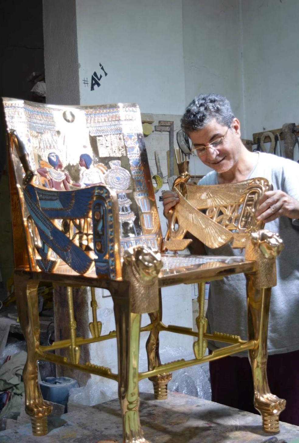 وتحدى "العزبي" الجميع قائلا إنه يستطيع تنفيذ نسخة كاملة من مقبرة توت عنخ آمون الشهيرة، التي اكتشفها هوارد كارتر عام 1922 في وادي الملوك في الأقصر، وذلك بكل تفاصيلها ومحتوياتها من الصناديق والأثاث والتماثيل، لتعرض في متاحف خاصة أو قاعات فنية حول العالم.