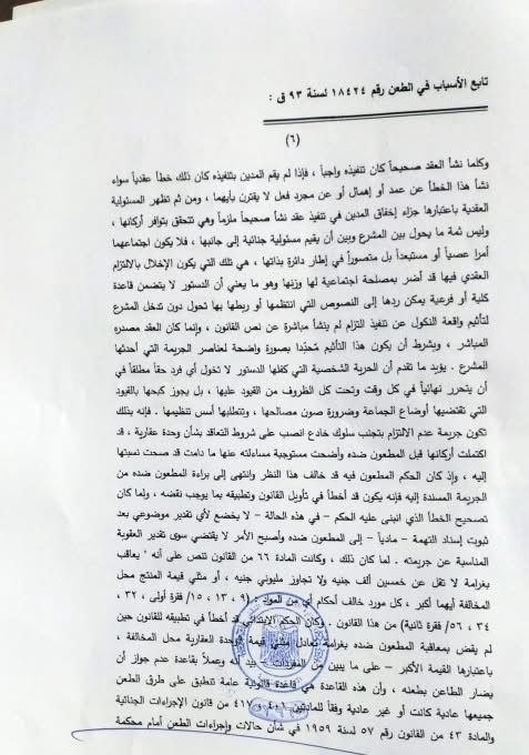 ورأت المحكمة أن قصر النظر على أن النزاع «مدني» والمضيّ معه دون بحث طبيعة السلوك المادي الذي وقع، خطأ في التطبيق والتأويل، لأن المشرّع قصَد أن يجرّم ويعاقب هذا النوع من السلوك لحماية السوق والمستهلكين، واستندت المحكمة أيضًا إلى أن ما آلت إليه درجات التقاضي السابقة وقرار إضافة نصوص قانون حماية المستهلك ضمن مواد الاتهام يؤهل لإلزام المتهم بالعقوبة المنصوص عليها قانونًا.