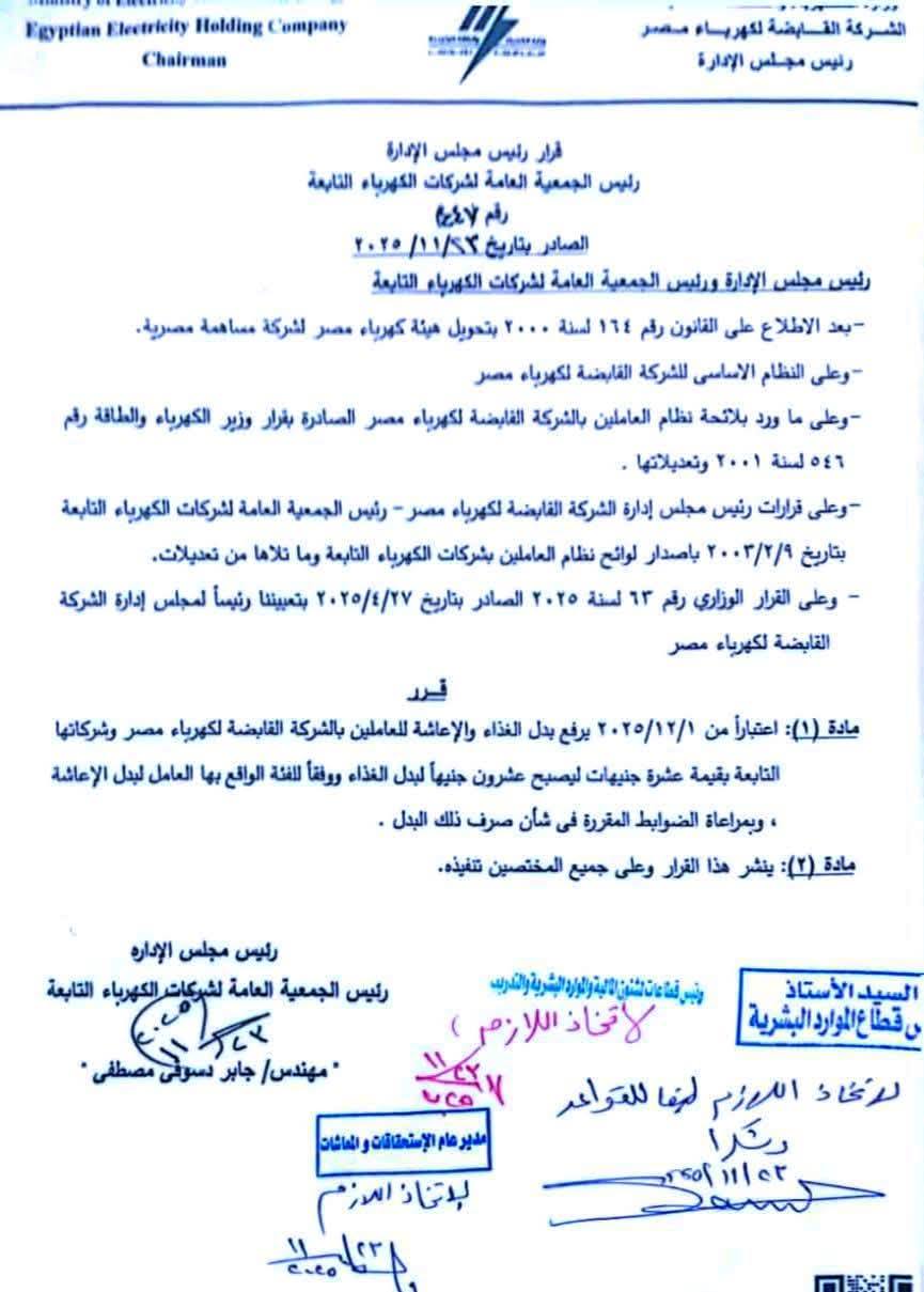 وطالب محطات كهرباء أسوان بصرف الأرباح السنوية إلى جانب حافز تحقيق الأهداف، ورفع قيمة حافز التميز وصرفه شهريًا، بدلًا من صرفه كل عدة أشهر، وزيادة بدل الغذاء والإنارة بما يتناسب مع الاحتياجات الأساسية وخاصة للعاملين بالمناطق النائية استنادا للمادة (34) من قانون العمل التي تكفل حياة كريمة للعامل، كما طالب العمال بإعادة النظر في سياسات التفرقة بين العمال في شركات إنتاج الكهرباء، وتوحيد نظم الرواتب والبدلات بين كافة شركات القطاع.