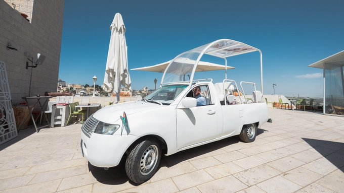 واستخدم البابا فرنسيس هذه السيارة خلال زيارته إلى مدينة بيت لحم فى فلسطين المحتلة، عام 2014، وهي من طراز ميتسوبيشي بيك أب معدلة، أهداها له رئيس السلطة الفلسطينية محمود عباس.
