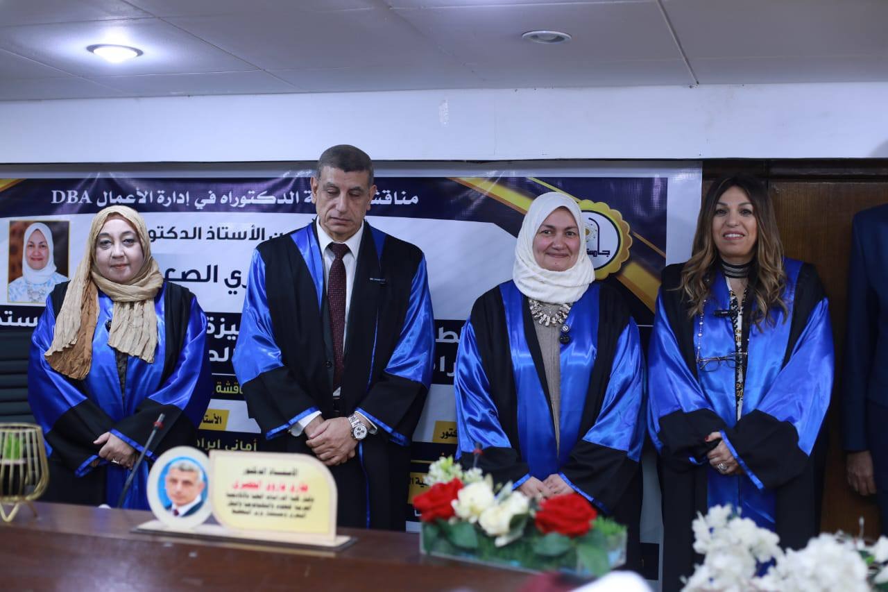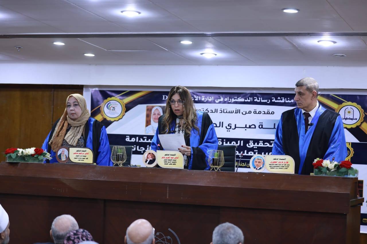 تكونت لجنة المناقشة والحكم التي أوصت بمنح الباحثة درجة الدكتوراه المهنية، من السادة الأساتذة: الدكتورة أماني فاخر، أستاذ الاقتصاد الدولي، عميد الكلية الأسبق، عضو مجلس الشيوخ، مشرفًا، الدكتور طارق فاروق الحصري، استشاري التطوير المؤسسي والحوكمة، عضو هيئة التدريس بالأكاديمية الوطنية لمكافحة الفساد، مناقشًا، الدكتورة أماني إبراهيم شاهين، أستاذ إدارة الأعمال بالكلية، مناقشًا، الدكتور جمعة رجب، مدرس الاقتصاد الدولي بالكلية، مشرفًا مساعدًا
