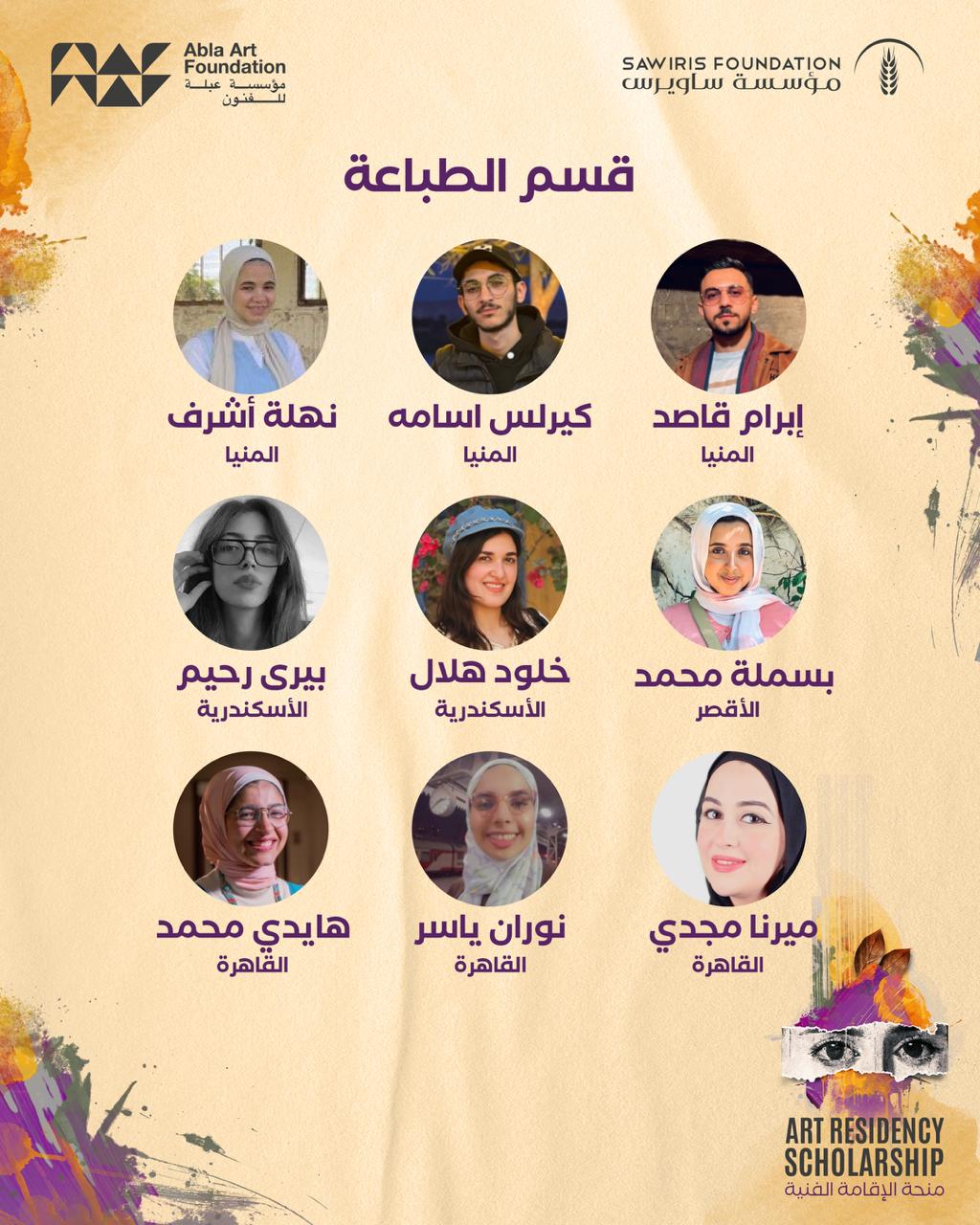 وفي قسم الطباعة: عبد الرحمن سالم من الإسكندرية، فتحي حسين من الإسكندرية، فرحة السماحي من الجيزة، محمود ماهر من الحيرة، مريم خالد من الإسكندرية، مريم عصام من الإسكندرية، منة مسعد من الإسكندرية، أحمد سامي من المنوفية، آلاء عكة من كفر الشيخ، تسنيم عياد من الإسكندرية، جومانا شريف من كفر الشيخ، رنا أحمد من القاهرة، ريم الحفناوي من البحيرة، سلمى أحمد من الإسكندرية، شهد المرلي من البحيرة، عبد الرحمن فايد من الإسكندرية.