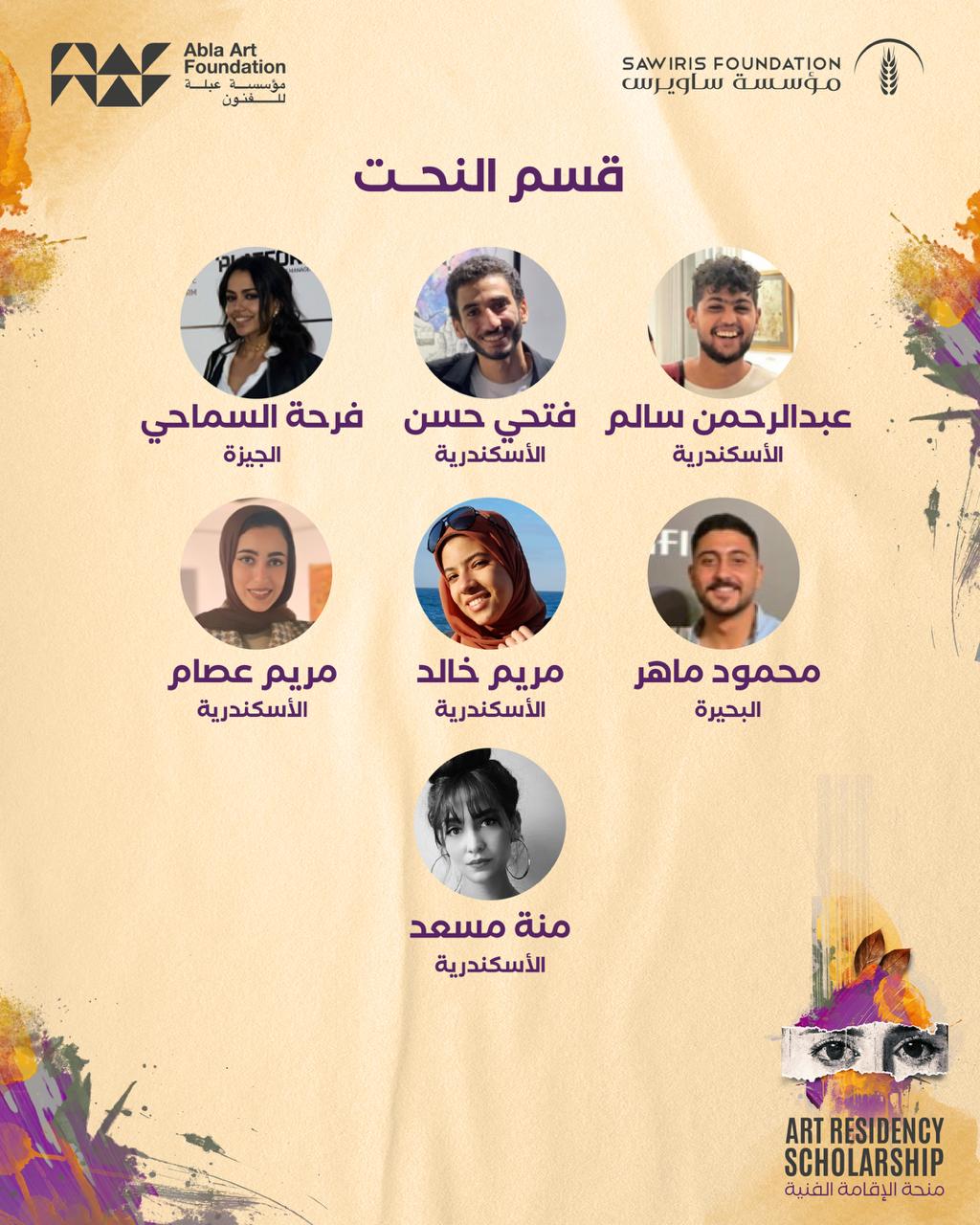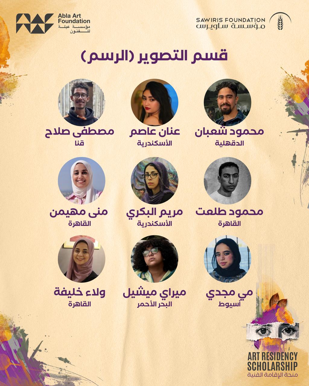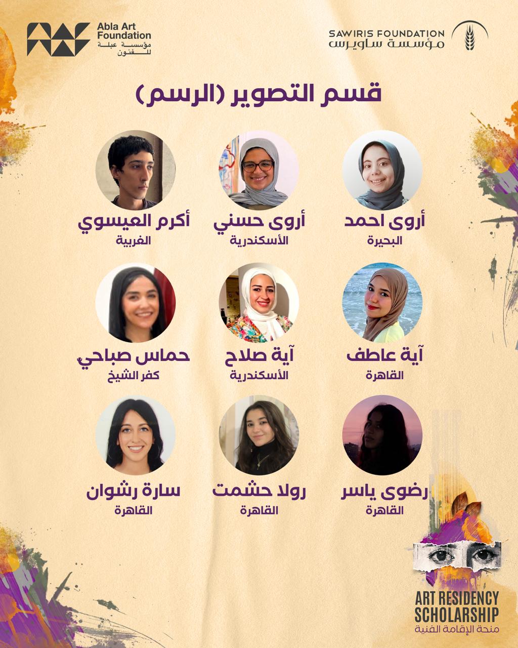 وفي قسم التصوير (الرسم): محمود شعبان من الدقهلية، عنان عصام من الإسكندرية، مصطفى من قنا، محمود طلعت من القاهرة، مريم البكري من الإسكندرية، منى مهيمن من القاهرة، مي مجدي من أسيوط، ميراي ميشيل من البحر الأحمر، ولاء خليفة من القاهرة، أروى أحمد البحيرة، أروى حسني من الإسكندرية، أكرم العيسوي من الغربية، وآية عاطف من القاهرة، وآية صلاح من الإسكندرية، وحماس صباحي من كفر الشيخ، ورضوى ياسر من القاهرة، ورولا حشمت من القاهرة، وسارة رشوان من القاهرة.