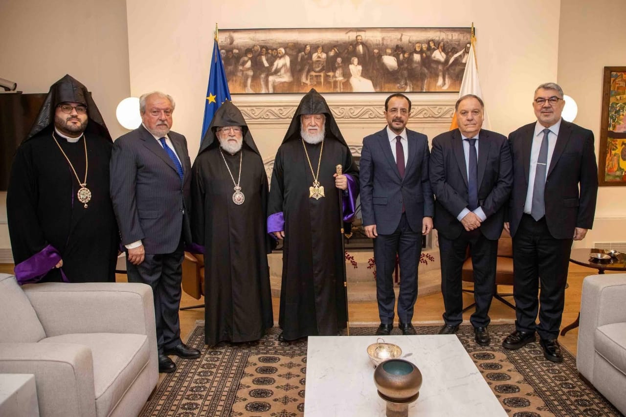 فى تحرك مفاجىء لبطريرك الأرمن الأرثوذكس- آرام الأول-" المشرف على الجالية الإرمنية بلبنان وسوريا والكويت وقبرص وأمريكا " التقى مؤخرا برئيس جمهورية قبرص نيكوس خريستودوليس فى قصره الرئاسى بنيقوسيا للحديث حول استحداث اليات بين الطرفين من أجل حماية التراث الأرمينى والحفاظ على المؤسسات التعليمية والدينية التابعة للطائفة ثم تلتها زيارة آخرى لرئيس أساقفة قبرص جوارجيوس بحسب برنامج معد مسبقا وتطرق الحديث – بحسب بيان حصلت الصفحة الأولى على نسخة منه- إلى التحدياث الثنائية التى تواجه الطرفين فى المنطقة وتم التوافق على وضع تصور لحل ملف الممتلكات والمقتنيات بالمناطق المحتله من قبل تركيا .