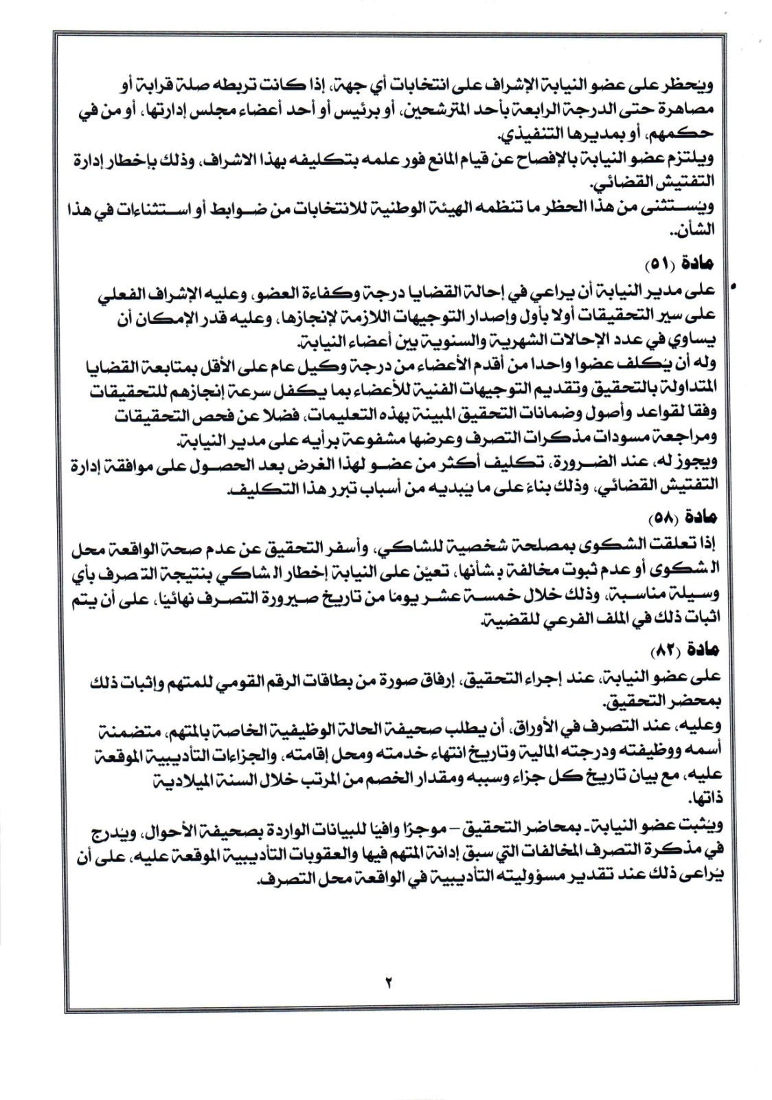 مادة (۲۱) على أعضاء النيابة الذين يرشحون للإشراف على الانتخابات أن يباشروا عملهم بكفاءة واقتدار، وبذل كل الجهد في سبيل تحقيق الهدف من اختيار أعضاء الهيئات القضائية لهذه المهام رعاية لما تقتضيه من الموضوعية والحيدة