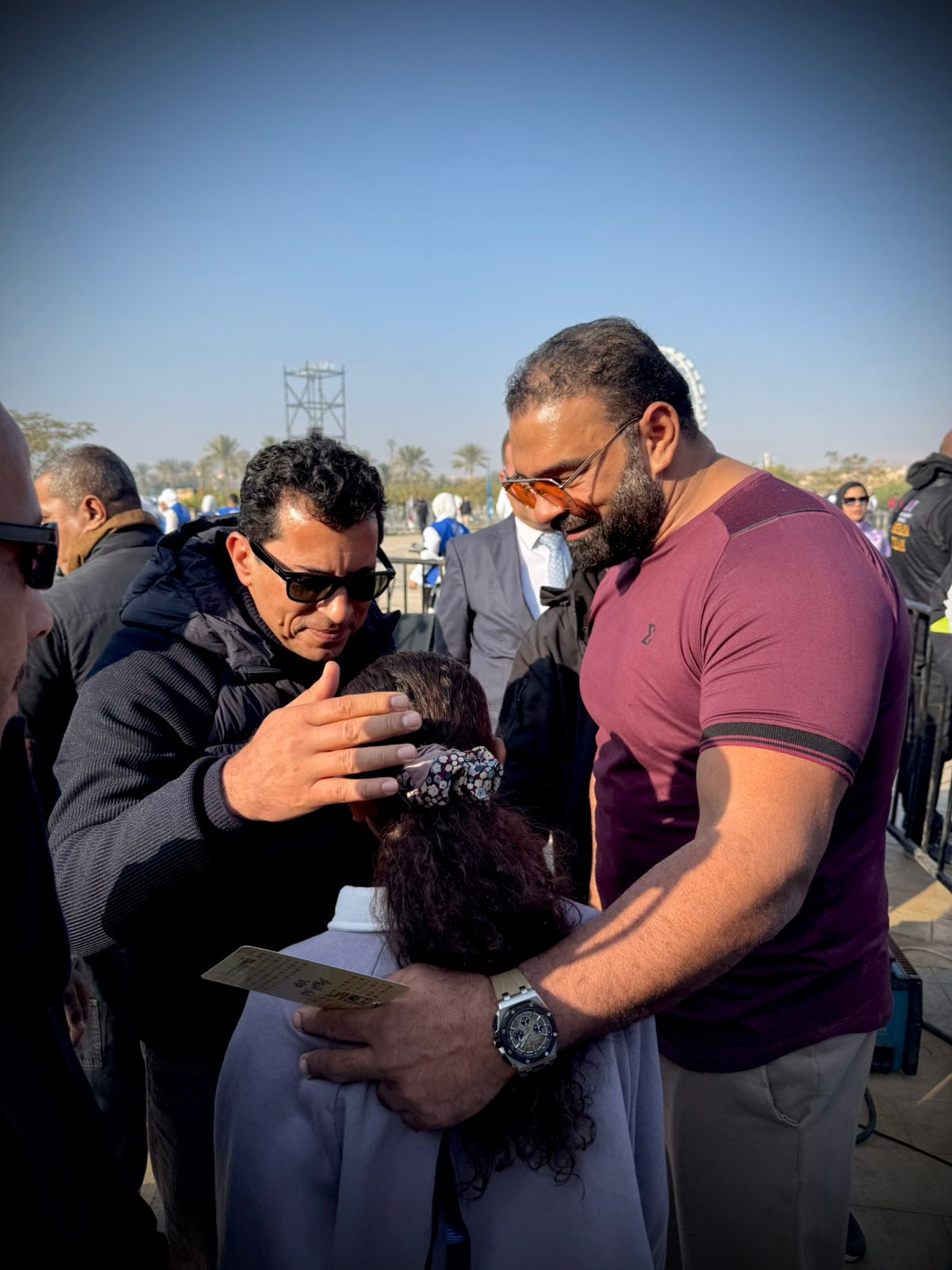 وزير الرياضة يداعب بطلة الجمهورية للجمباز " نور شندى" خلال مارثون زايد