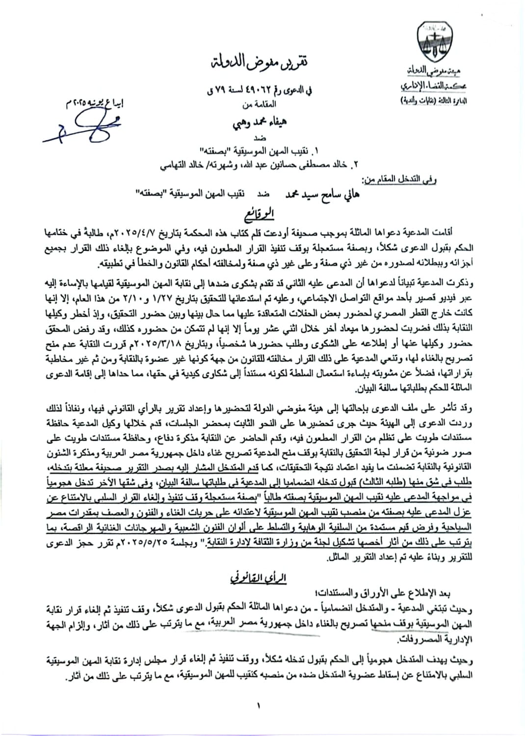 وقبل الحكم، أصدرت هيئة مفوضي الدولة تقريرا أوصى بإلغاء قرار النقابة، واعتبر أن تدخلها في منع فنانة من ممارسة عملها جاء خارج حدود الاختصاص القانوني، ودون سند قضائي، بما يشكل عدوانًا على الحرية الدستورية للإبداع..