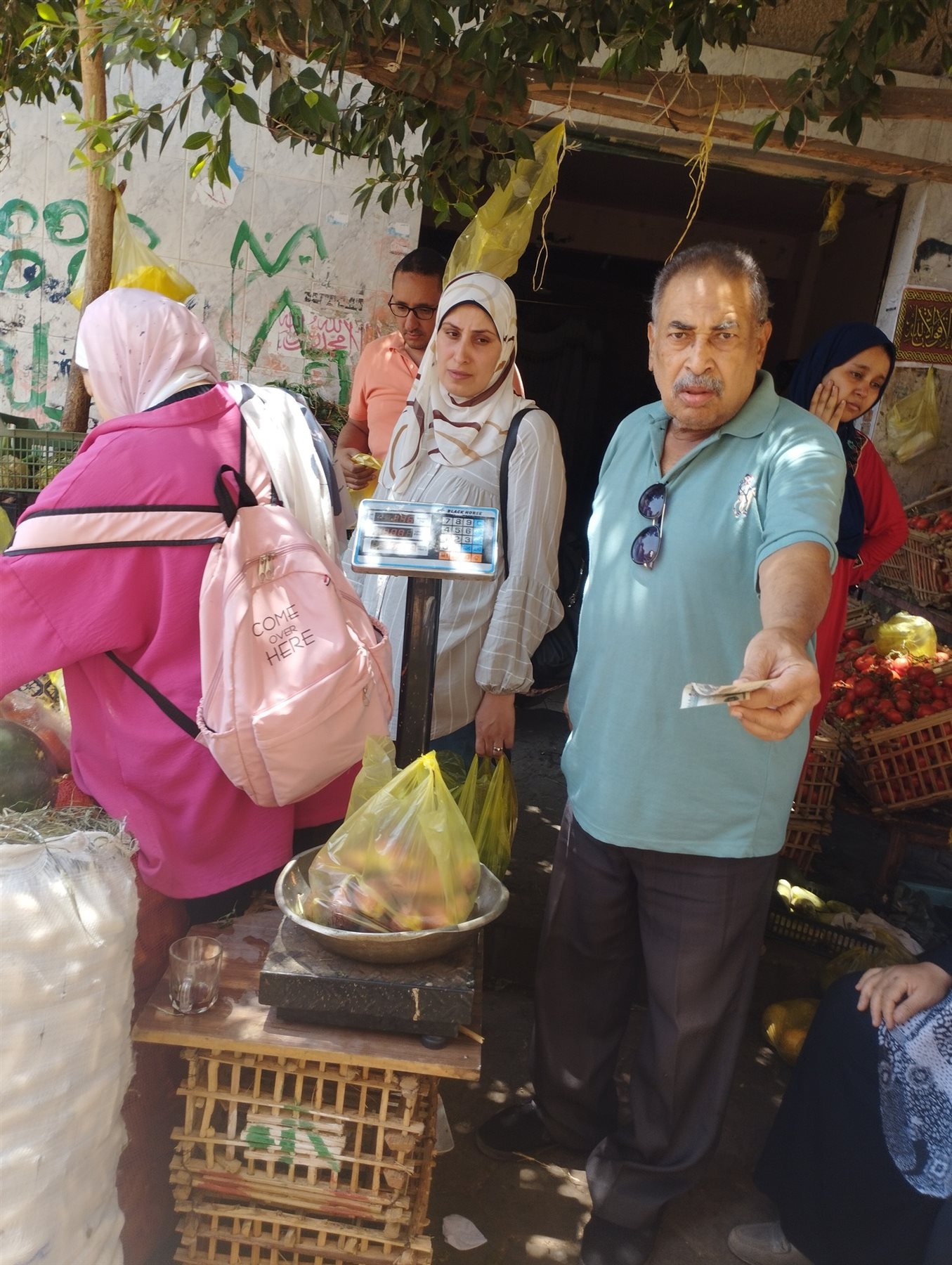 وقال السكان لـ «الصفحة الأولى» إن محل "الأرزاق بالله" للخضروات والفاكهة، يقع أسفل عمارة رقم 30 في شارع السنترال، التابع لمحلية 34 في الحي الثاني في العبور، حيث افترش أصحاب المحل بضاعتهم خارجه واستولوا على الشارع، كما يعرقلون دخول وخروج سكان العمارة، بسبب أقفاص الفاكهة والخضار المتراكمة أمام المدخل، مع تكرار المشاكل والمشاجرات بين العمال والسكان والزبائن، ما حول المنطقة إلى حالة من الفوضى والضوضاء المستمرة ليلا ونهارا.