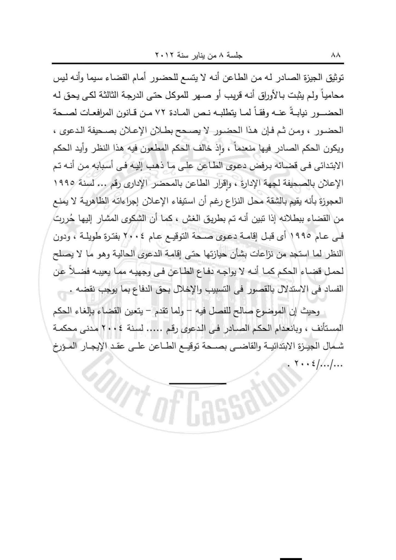 إبطال حكم بصحة توقيع عقد إيجار بسبب الغش في اجراءات الإعلان