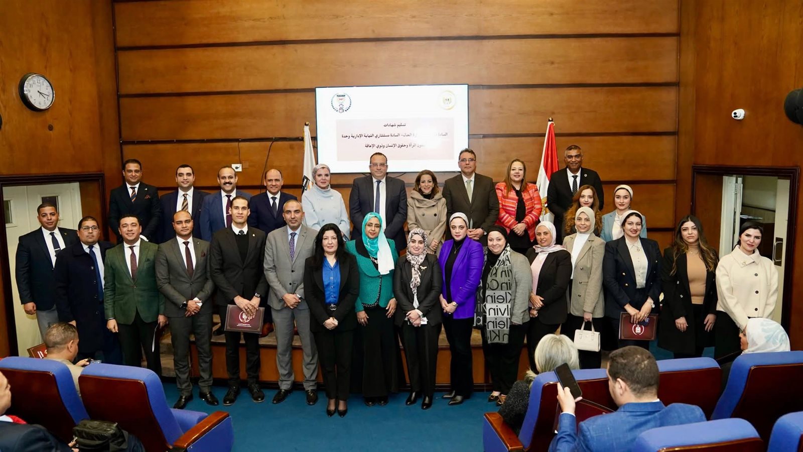 شهد معهد التخطيط القومي أمس الأحد الموافق ١١ يناير ٢٠٢٦ فعاليات تسليم شهادات إتمام دورتين تدريبيتين لأعضاء النيابة الإدارية، وذلك تحت رعاية المستشار عدنان فنجري وزير العدل والمستشار محمد الشناوي رئيس هيئة النيابة الإدارية، وفي إطار التعاون المشترك بين وحدة شئون المرأة وحقوق الإنسان وذوي الإعاقة بالنيابة الإدارية وقطاع التخطيط والتنمية الإدارية والمتابعة بوزارة العدل والمعهد القومي للتخطيط، وبحضور نائب رئيس المعهد للتدريب والاستشارات وخدمة المجتمع.