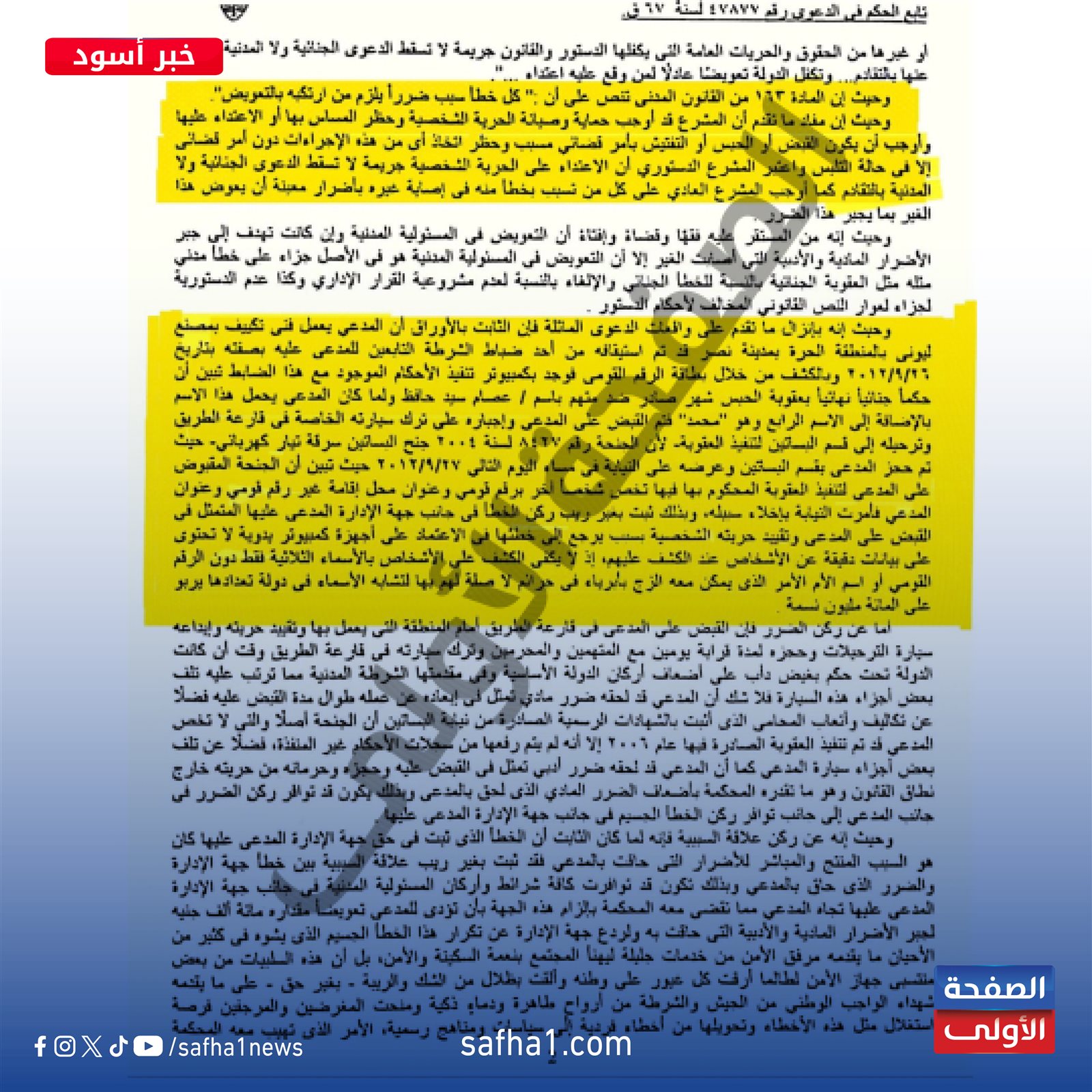 حكم تاريخي بتعويض 100ألف جنيه لمواطن قبض عليه بالخطأ بسبب تشابه أسماء