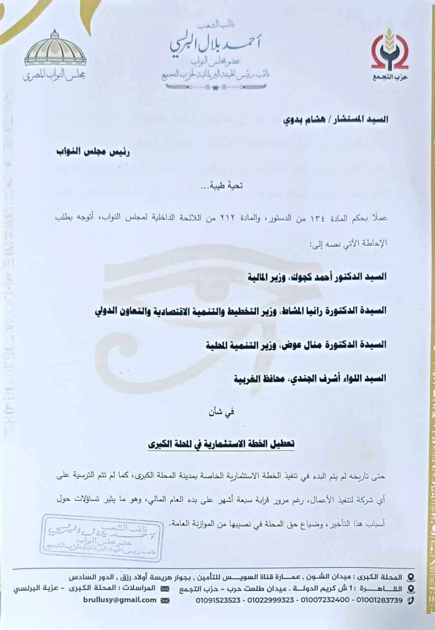 فجر النائب أحمد بلال البرلسي، عضو مجلس النواب عن مدينة المحلة الكبرى، مفاجأة مدوية تحت قبة البرلمان بتقديمه طلب إحاطة عاجل، يتهم فيه محافظ الغربية باتخاذ قرارات "تخدم الفساد" وتؤدي إلى انهيار منظومة النظافة في قلعة الصناعة المصرية.