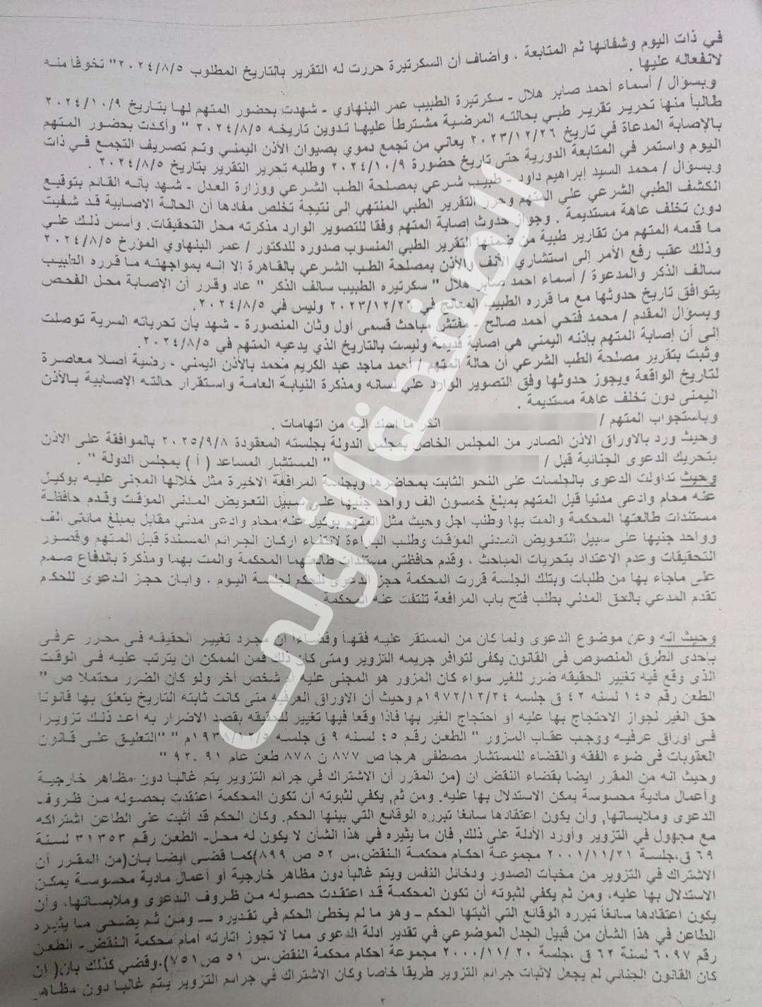 وصدر الحكم في القضية رقم 11320 لسنة 2024 جنح قسم ثان المنصورة، ضد مستشار مساعد (أ) في مجلس الدولة، والتي اتهمته فيها، بأنه في دائرة قسم ثان المنصورة، اشترك بطريق المساعدة مع أخرى "حسنة النية " في ارتكاب تزوير في محرر عرفي، هو تقرير طبي، وكان ذلك بجعل واقعة مزورة في صورة واقعة صحيحة بأن أمد الأولى بالبيانات المراد إثباتها ودونتها بالتقرير المؤرخ 5 أغسطس 2024، وذلك على خلاف الحقيقة، واستعملها بأن قدمها في الشكوى محل التحقيقات للاعتداد بها بما ورد به.