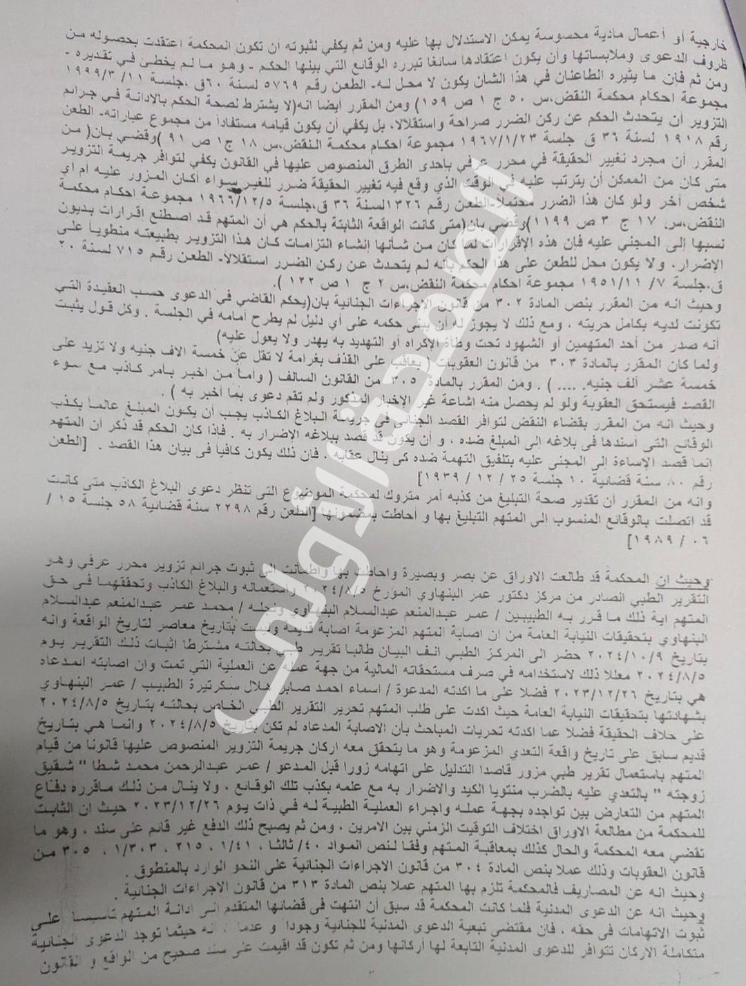 وحكمت محكمة جنح المنصورة، على مستشار في مجلس الدولة، بالحبس 6 أشهر مع الشغل وكفالة ألف جنيه لإيقاف التنفيذ، وتغريمه 5 آلاف جنيه ودفع مبلغ مساو كتعويض مدني مؤقت، بتهمة تزوير محرر عرفي "تقرير طبي"، والبلاغ الكاذب باتهام شقيق زوجته بالتعدي عليه بالضرب، على خلاف الحقيقة، بقصد الإضرار به.