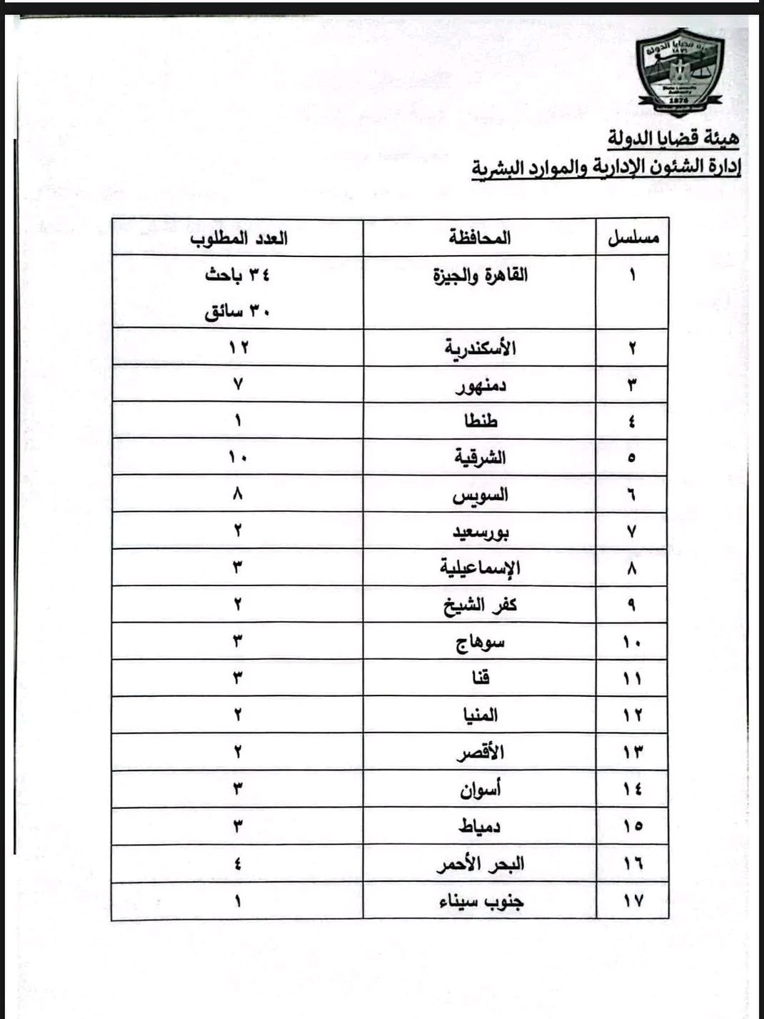 أعلنت هيئة قضايا الدولة عن حاجتها للتعاقد بنظام الاستعانة وذلك وفق الإعلان الداخلي رقم 79 لسنة 2026 لشغل عدد من الوظائف، وتشمل الوظائف المطلوبة عدد 100 باحث قانون من الحاصلين على ليسانس حقوق وعدد 30 سائق للعمل بديوان الهيئة والفروع التابعة لها.