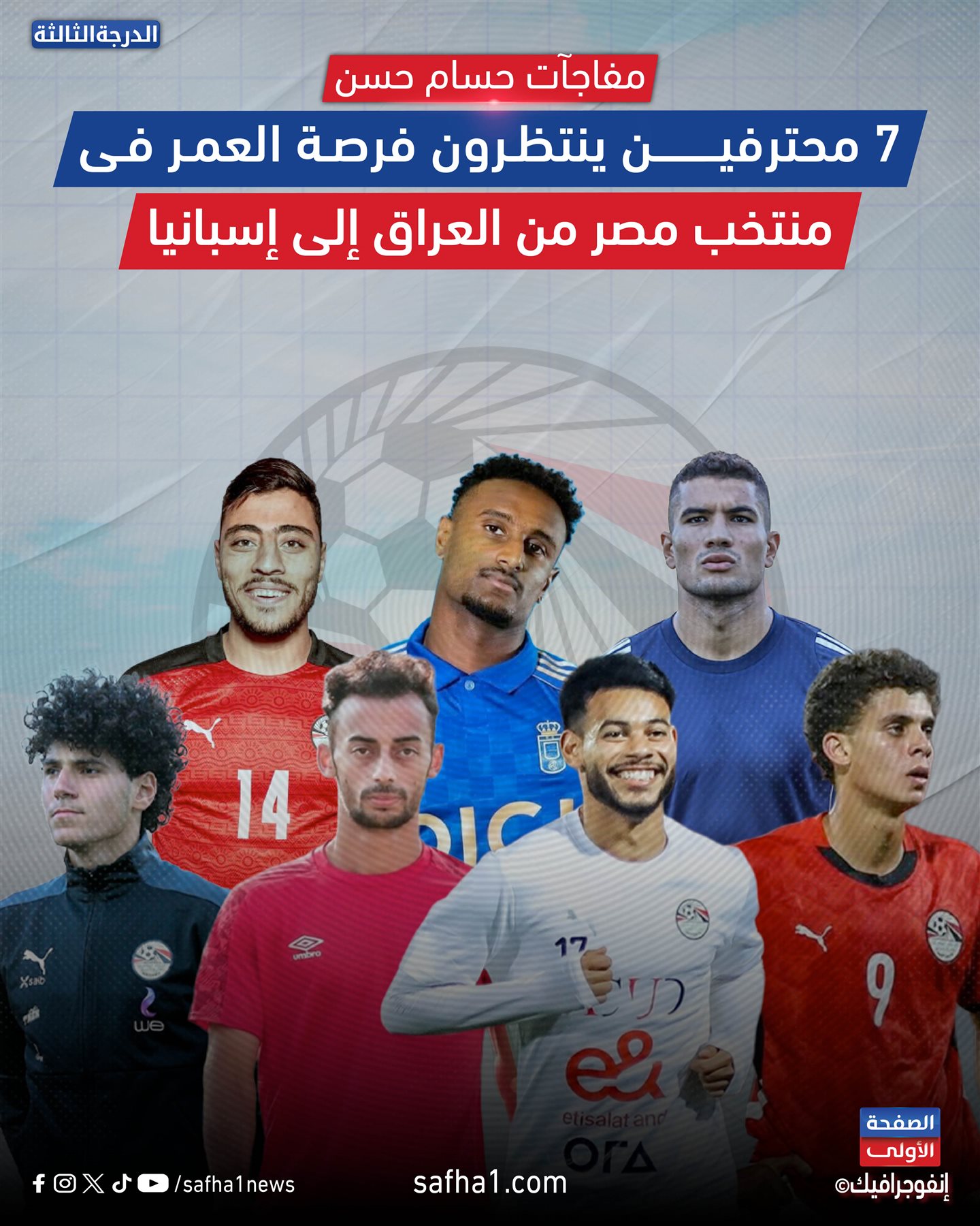 ويرصد الصفحة الأولى في السطور التالية قصة 7 محترفين ينتظرون حسام حسن وقراره في منتخب مصر قبل كأس العالم 2026.