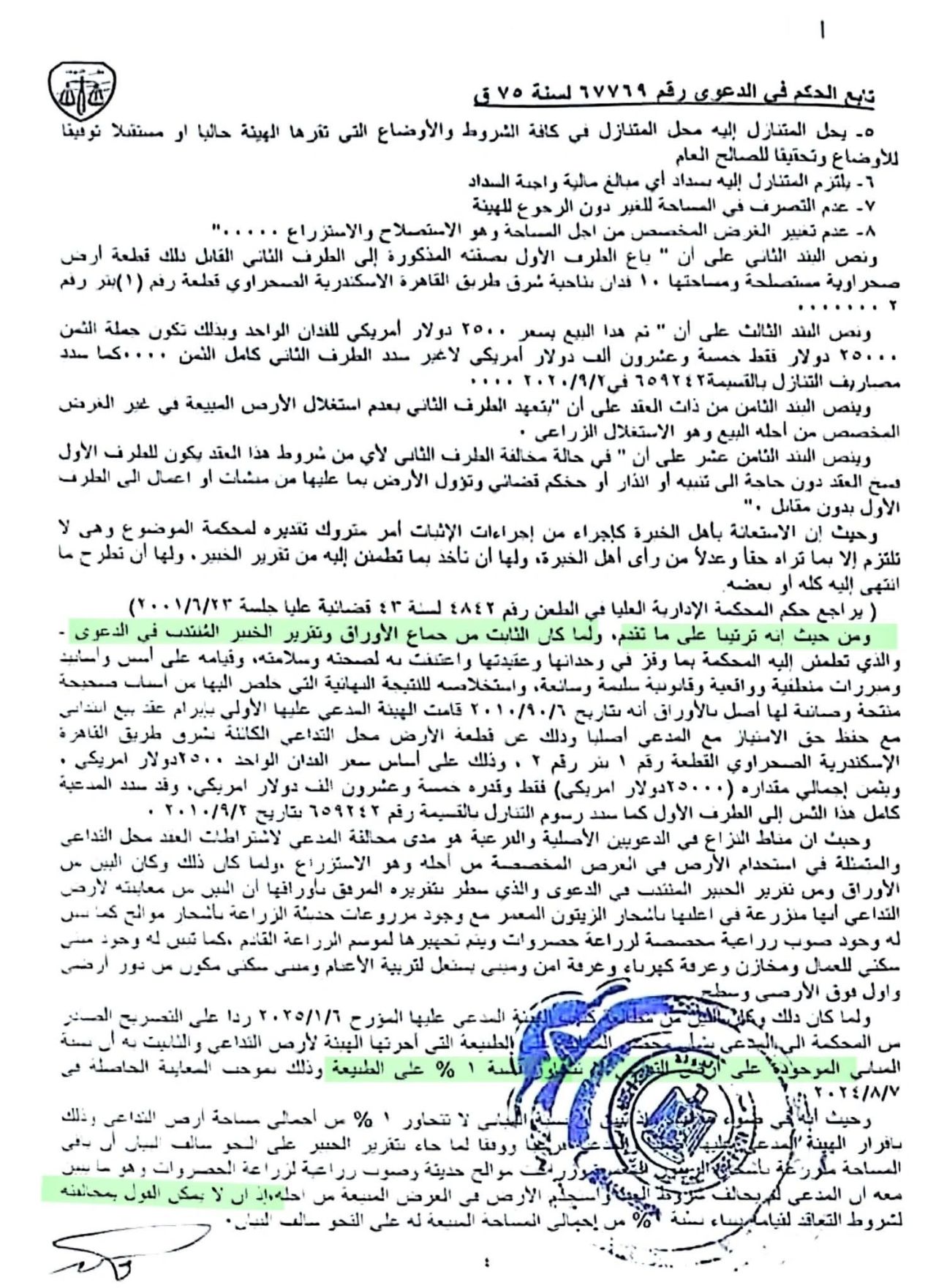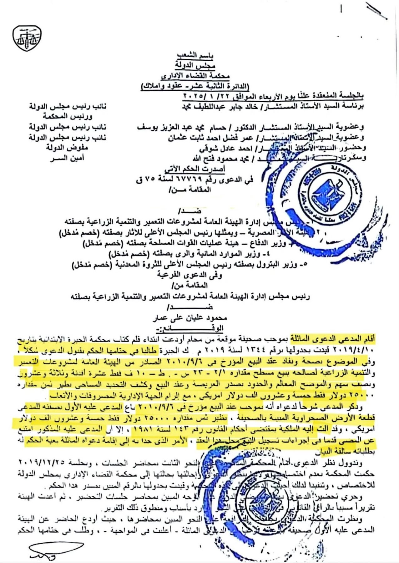 وجاء حكم القضاء الإداري في مجلس الدولة، في الدعوى رقم 67769 لسنة 75 ق، الدائرة الثانية عشر عقود وأملاك، بتاريخ 19 يوليو 2025، وتمثلت وقائع الدعوى، في إقامة المدعي دعواه ضد الهيئة العامة لمشروعات التعمير والتنمية الزراعية وآخرين، طاعنًا على الامتناع عن تحرير عقد بيع نهائي لأرض صحراوية كان قد اشتراها منها منذ عام 2010، رغم امتلاكه عقد بيع ابتدائي مؤرخ 9/9/2010، بعدما اشترى المدعي مساحة 10 أفدنة أرض صحراوية من الهيئة العامة للتعمير، بثمن 25,000 دولار أمريكي، وتم سداد كامل المبلغ.