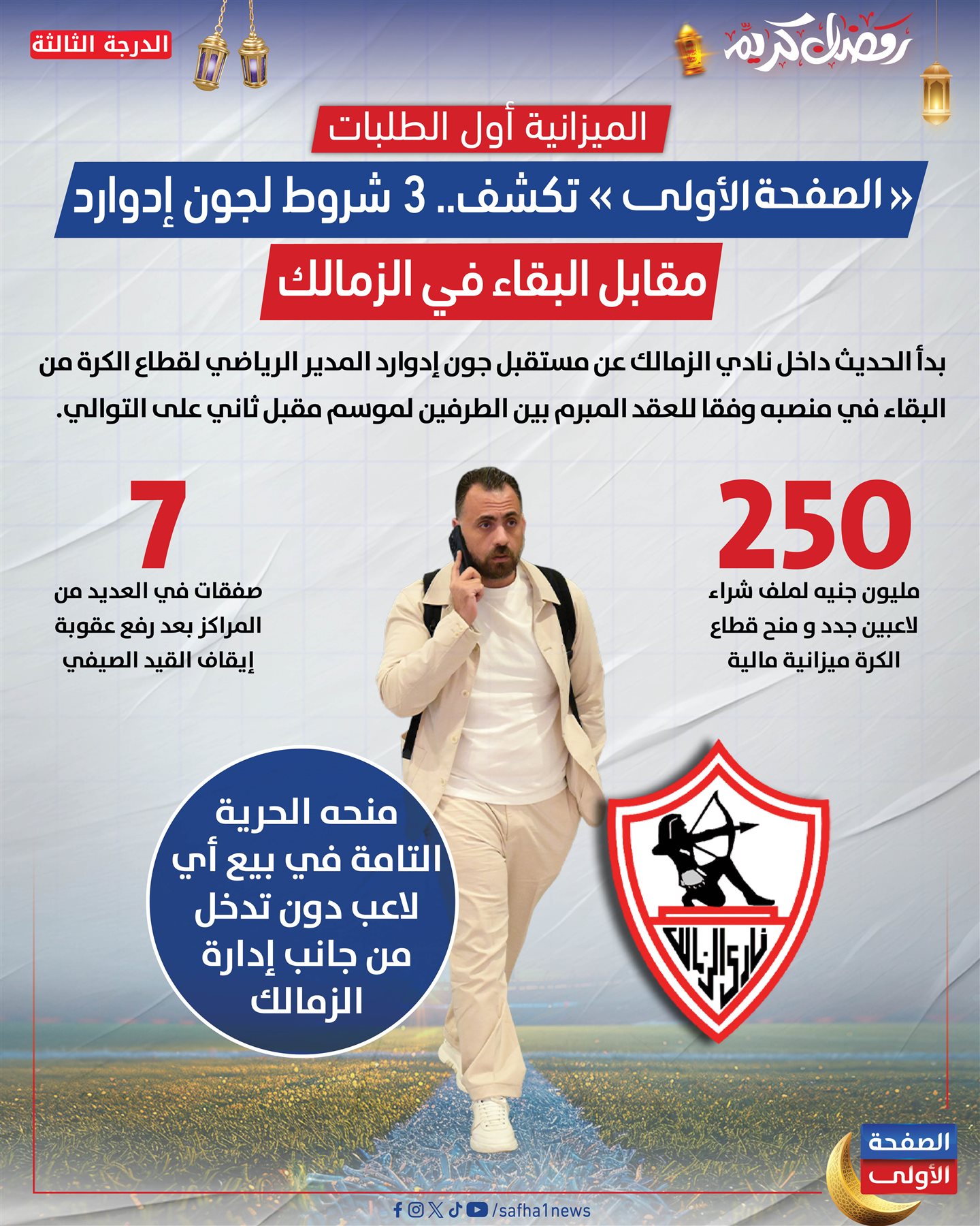 الصفحة الأولى تكشف.. 3 شروط لجون إدوارد مقابل البقاء في الزمالك