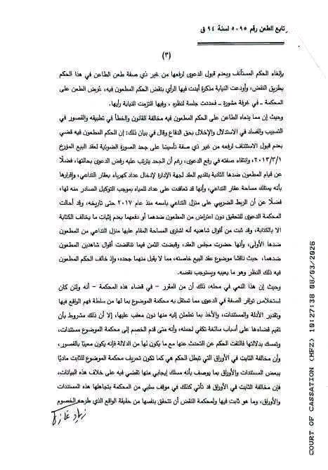 إضافة إلى أن المطعون ضدها الثانية قدمت العقد لجهة الإدارة لإدخال عداد كهرباء في العقار محل الدعوى وإقرارها بأنه يمتلك مساحة العقار وأنها قد تعاقدت على عداد للمياه بموجب التوكيل الصادر منه لها، فضلاً عن أن الربط الضريبي على المنزل باسمه منذ عام 2017 حتى تاريخه.