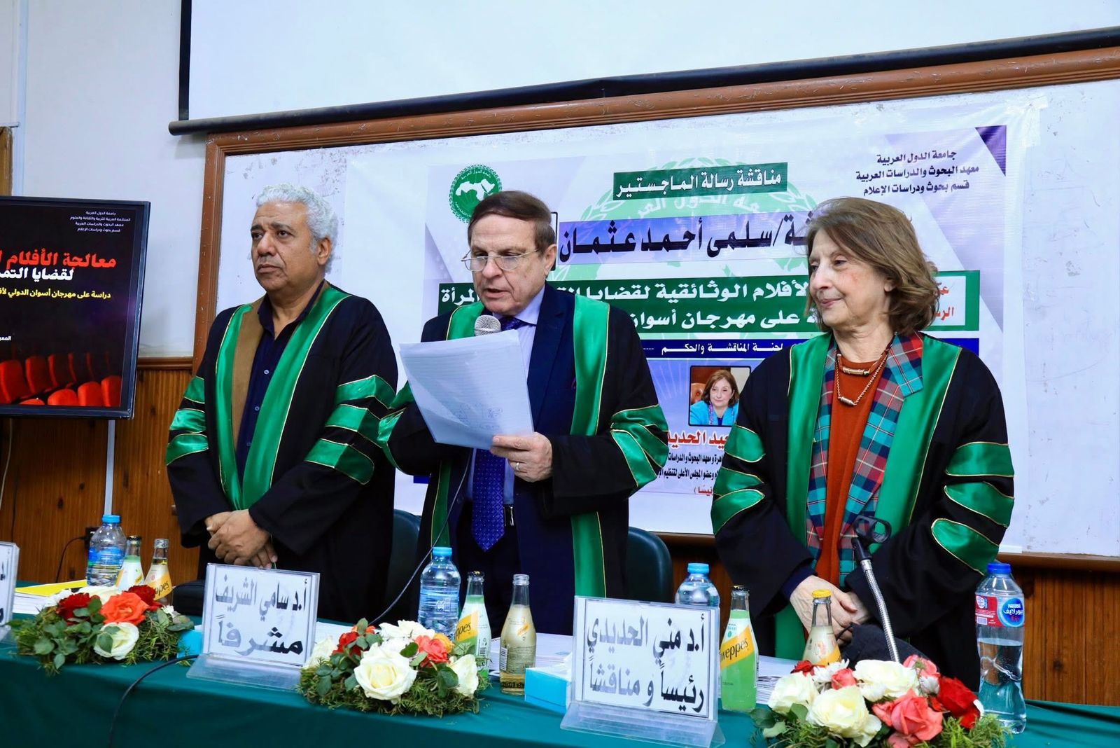 وتتشكل لجنة الحكم والمناقشة من الأستاذة الدكتورة منى الحديدي، أستاذ الإذاعة والتليفزيون بجامعة القاهرة ومعهد البحوث والدراسات العربية والعميد الأسبق للأكاديمية الدولية للإعلام وعضو المجلس الأعلى لتنظيم الإعلام (رئيساً ومناقشاً)، والأستاذ الدكتور سامي الشريف، أستاذ الإذاعة والتلفزيون بكلية الإعلام- جامعة القاهرة وعميد كلية الإعلام بالجامعة الحديثة للتكنولوجيا والمعلومات والأمين العام لرابطة الجامعات الإسلامية (مشرفاً)، والسيناريست محمد عبد الخالق، رئيس مهرجان أسوان الدولي لأفلام المرأة (مناقشاً).
