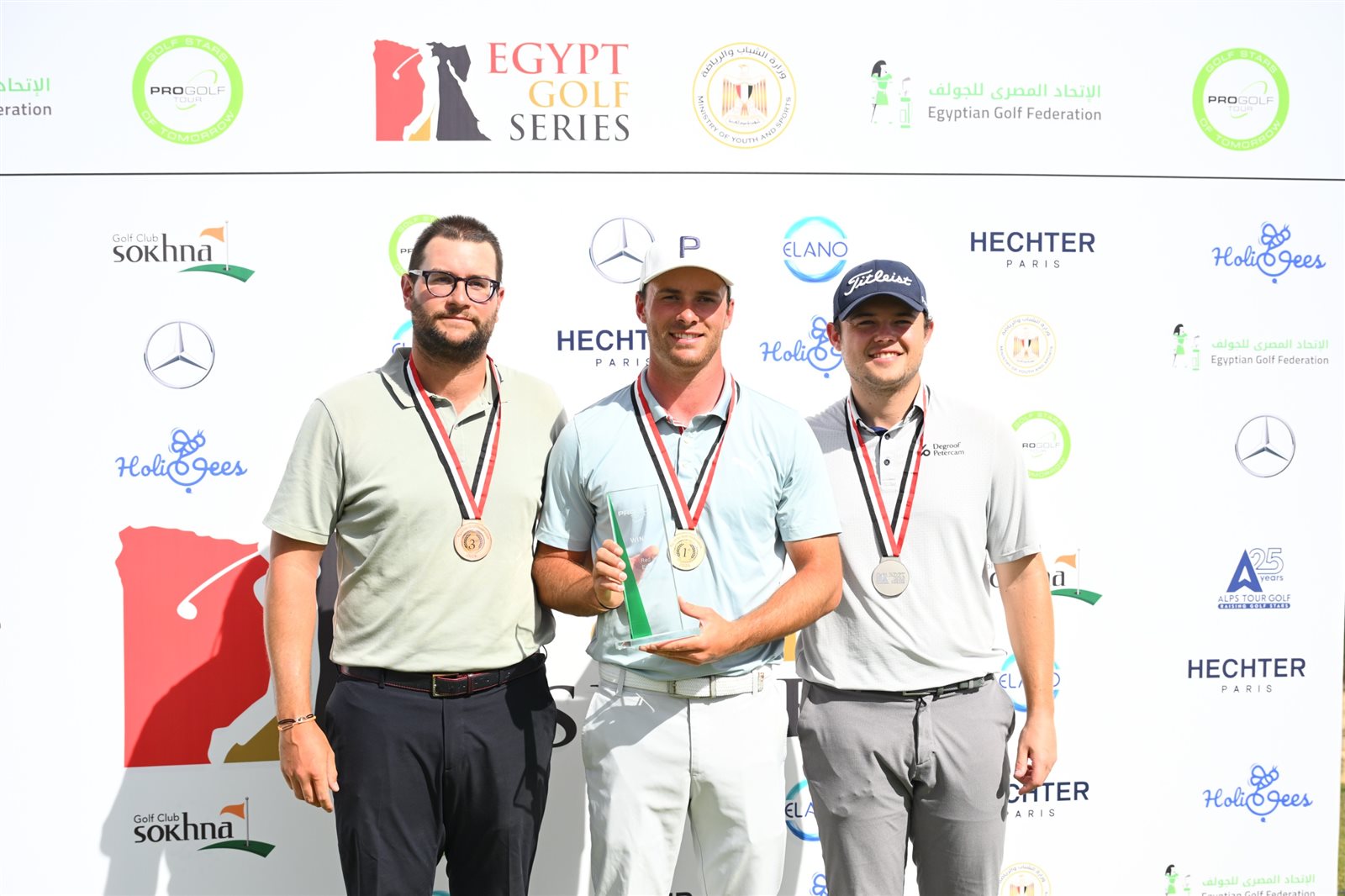 عقب انتهاء المنافسات اقيمت مراسم توزيع الجوائز وتسلم نيكولاس هوردير درع وكأس المركز الاول فى حضور ممثل اتحاد الجولف وممثل جولة برو جولف مارك ومدير نادى جولف السخنة على محمد واللاعبين المشاركين فى البطولة.
