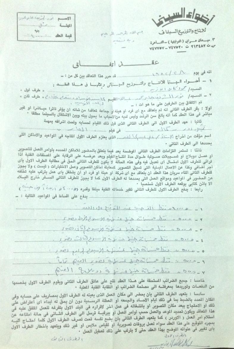 يؤكد ذلك صورة من خطاب نور الشريف لمحاميه الخاص، القانوني الكبير الراحل لبيب معوض، والذي جاء به: "الأخ العزيز الأستاذ لبيب معوض، تحية حب وتقدير أولاً: مرفق العقد موضوع القضية، رجاء إعطاء حامله صورة فوتوكوبي من العقد.