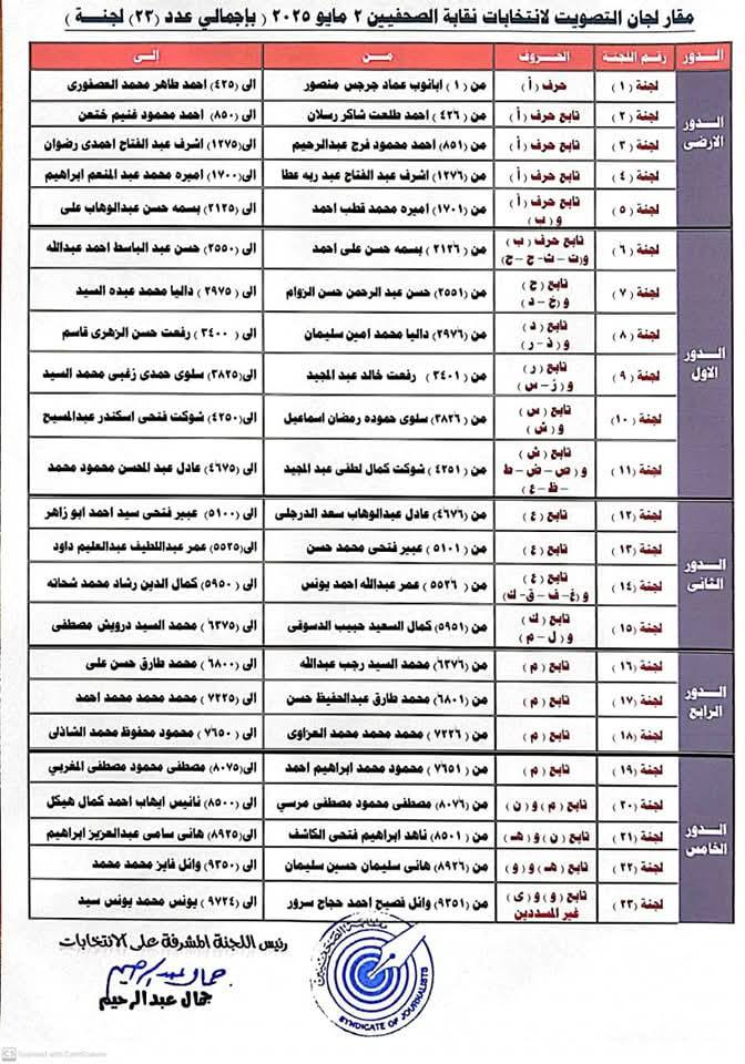 وجاءت الكشوف النهائية للمرشحين على مقعد النقيب: