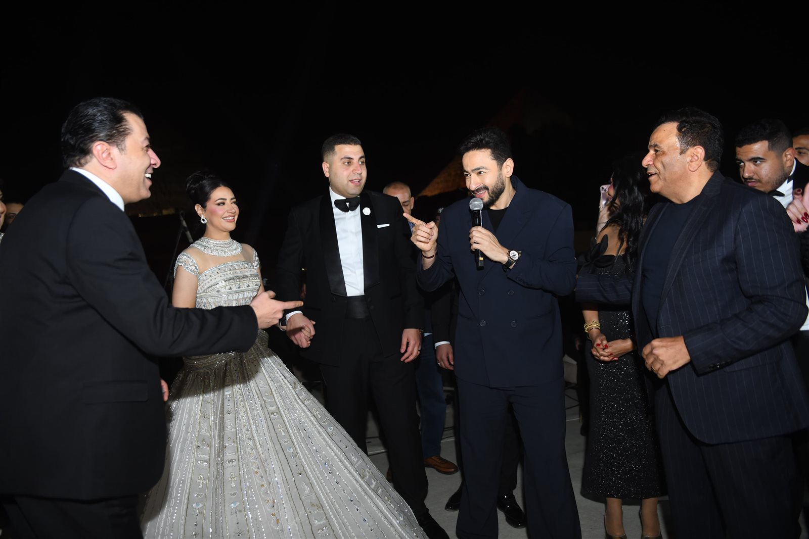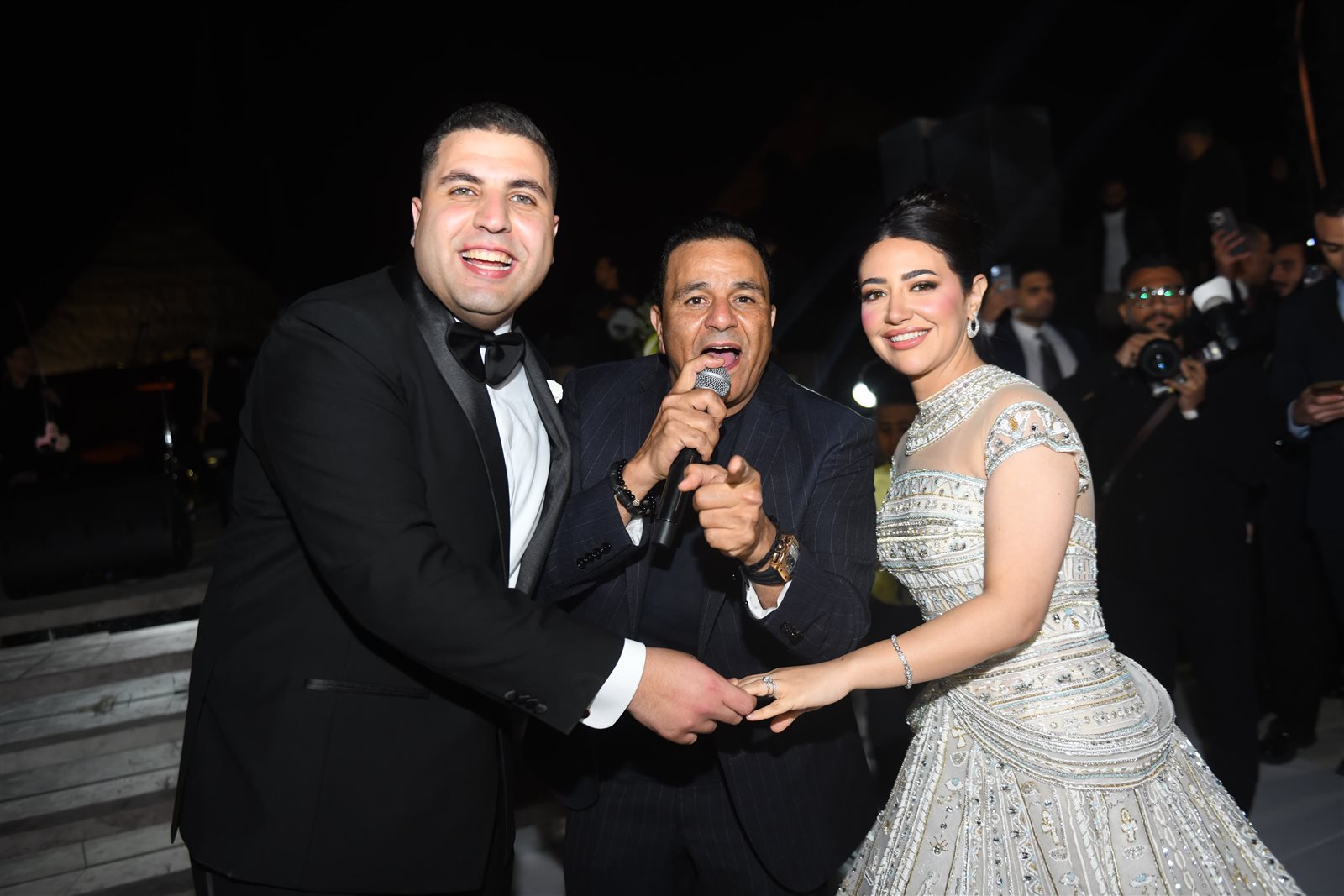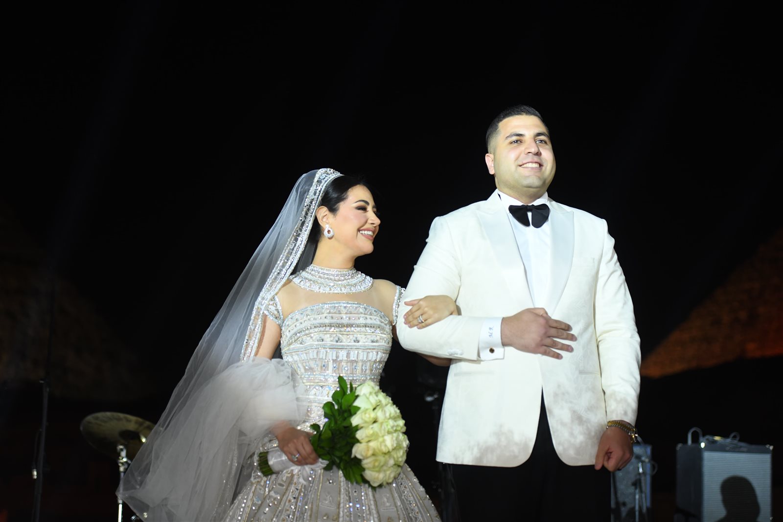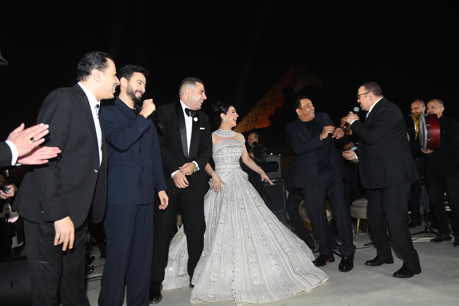 وتميز حفل الزفاف بأجواء مبهجة غمرتها السعادة، كما تخللتها فقرات موسيقية مميزة وسط أجواء احتفالية، خاصة مع الخلفية الفريدة التي قدمها موقع الأهرامات الخالد، وتلقى العروسان التهاني والتبريكات من الحضور، وسط تمنيات بحياة زوجية سعيدة ومستقبل مشرق.