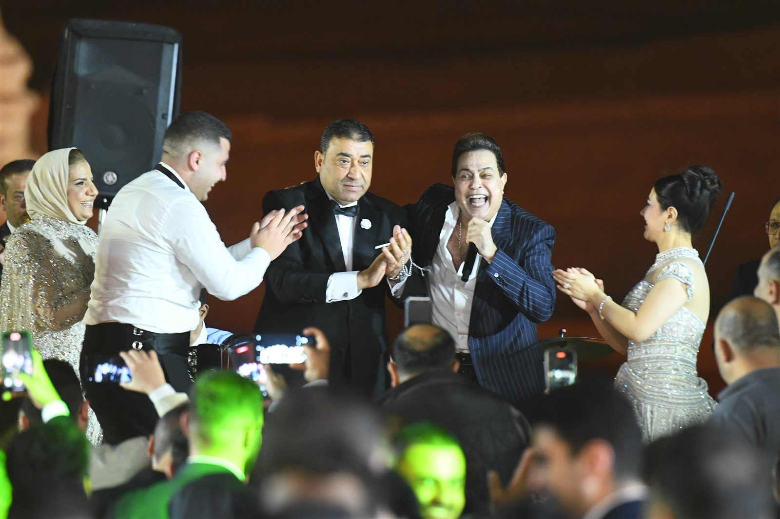 وحرص العديد من الوزراء وكبار المسئولين والشخصيات العامة ونجوم الفن والمجتمع على حضور حفل الزفاف، وتقديم التهاني للعروسين وأسرتيهما.