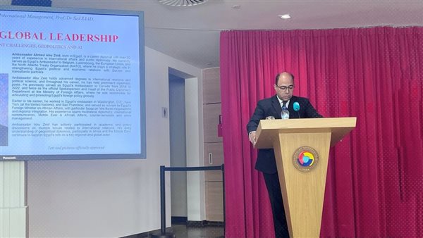 هذا، وتناول السفير أبو زيد فى كلمته التحديات والأزمات التى تواجهها منطقة الشرق الأوسط، وفى مقدمتها القضية الفلسطينية والأزمات فى السودان، واليمن، وسوريا، وأمن البحر الأحمر، مستعرضاً سياسة مصر الخارجية تجاه حلحلة تلك الأزمات، والجهود المصرية التى تستهدف إحلال السلام والاستقرار فى المنطقة والحفاظ على مؤسسات الدولة الوطنية فى مواجهة العوامل المزعزعة للاستقرار.