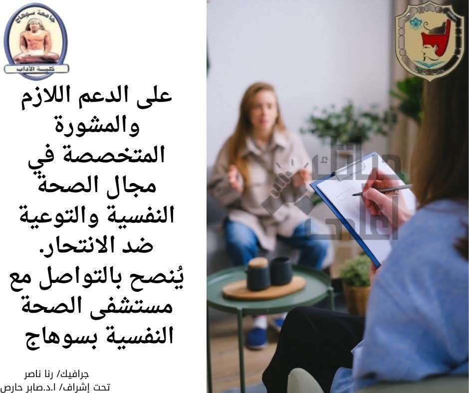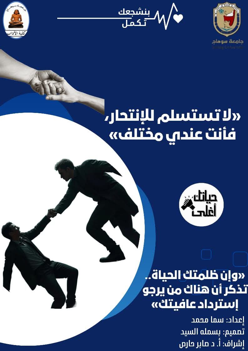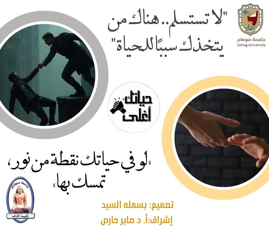 في مبادرة طلابية جريئة ومؤثرة، أطلق طلاب الفرقة الثالثة بقسم الإعلام بجامعة سوهاج حملة إعلامية شاملة تحت عنوان "حياتك أغلى" بهدف التصدي لظاهرة الانتحار المتزايدة في المجتمع المصري خاصة بين الشباب تأتي الحملة بإشراف الدكتور صابر حارص أستاذ الإعلام والرأي العام بالجامعة، وتسعى إلى نشر الوعي حول أسباب ومخاطر الانتحار، وتقديم الدعم النفسي والمعنوي للأفراد الذين قد تراودهم مثل هذه الأفكار.