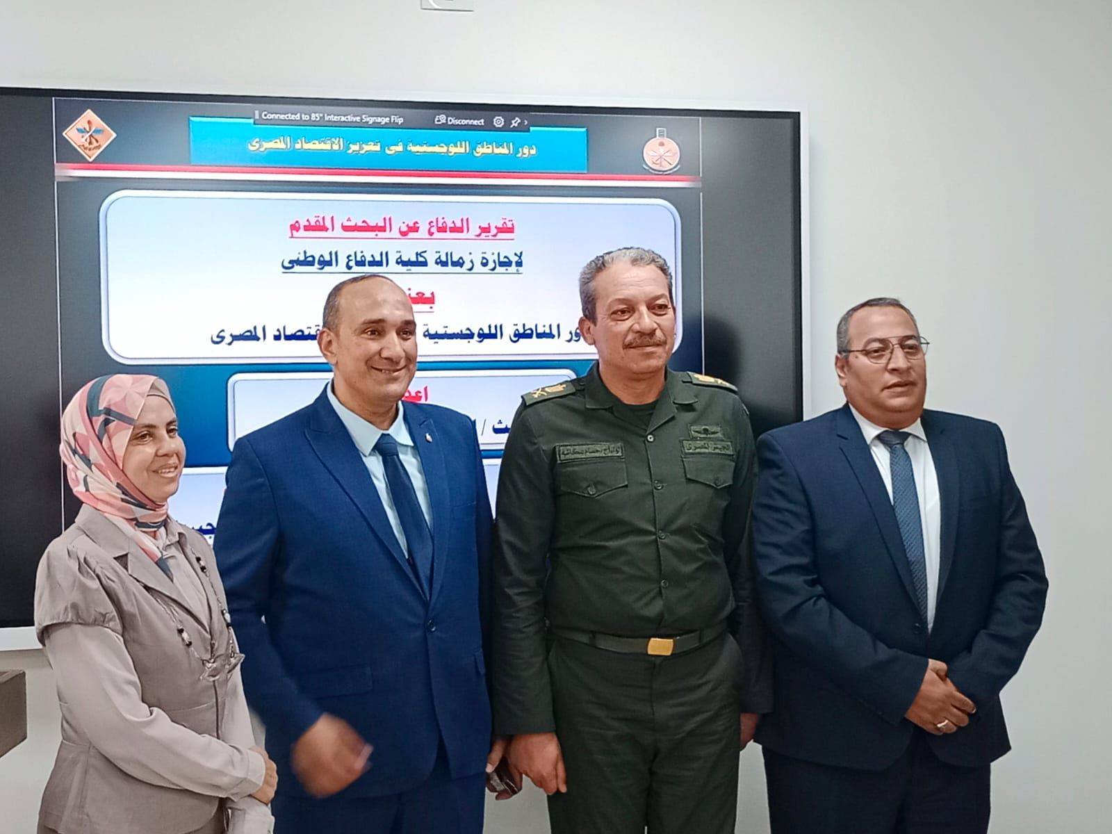 وشهدت مناقشة البحث حضور لفيف من القيادات العسكرية والاقتصادية البارزة، كما شهدت الجلسة الختامية حضور اللواء هشام السماحي رئيس قسم البحوث، والدكتور أيمن جبريل المشرف الأكاديمي، إلى جانب ممثلي وزارتي النقل والتخطيط وعدد من رؤساء الهيئات اللوجستية الوطنية.