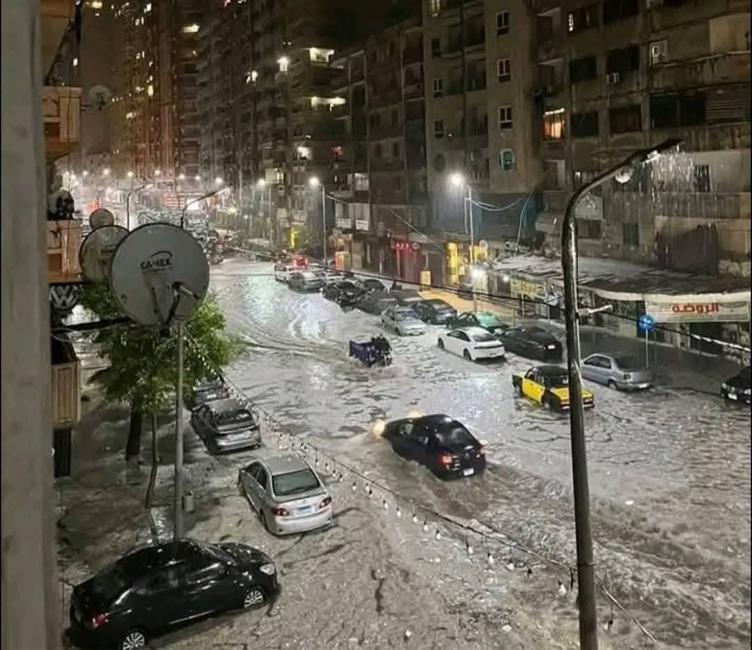 عاشت محافظة الإسكندرية ليلة من العواصف الثلجية والبرق هي الأعنف على الإطلاق، وحالة من أجواء الطقس السيء حتى ساعات الفجر، وتسببت تلك الأجواء في غرق المئات من السيارات بسبب امتداد الفيضانات إلى معظم شوارع المدينة فضلا عن الخسائر الفادحة في المباني التي تصدعت وانهارعدد من البلكونات والشرفات فيها.