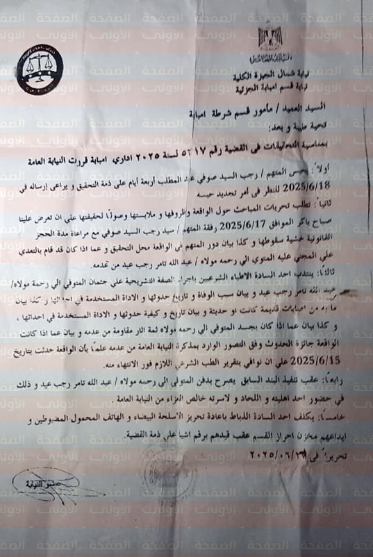 وبعد القبض على المتهم الرئيسي في القضية، قررت نيابة قسم إمبابة الجزئية التابعة لنيابة شمال الجيزة الكلية، حبس المتهم "ر. ص. ا"، 4 أيام على ذمة التحقيق، وذلك في القضية رقم 5617 لسنة 2025 إداري إمبابة.