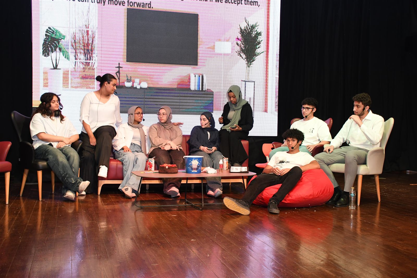 وشهد الحفل ايضا استعراض صامت عن مخاطر الاستخدام السئ للانترنت ، وبعدها قامت نوران احمد بتقديم فقرة أغنية فرنسية بعنوان "رقصة اخيرة" ، ثم قدم الطلاب الاغنية الشهيرة "سلمى يا سلامة" للنجمة المصرية العالمية داليدا باللغتين العربية والفرنسية التي شهدت تفاعل كبير من الحاضرين ، كما تم تقديم أغنية عن تقسيم العالم والحروب بعنوان "هم قسموا العالم" ، تناولت تقسيم العالم والحروب في منطقة الشرق الأوسط وأفريقيا والعدوان الاسرائيلي على غزة واختتمت الفعاليات بعرض مسرحية باللغة الفرنسية "مرآة الارواح" تتناول مجموعة من الاصدقاء يقفوا امام مرآة سحرية تظهر ما بداخلهم ، ثم تكريم كل المشاركين في الفعاليات .