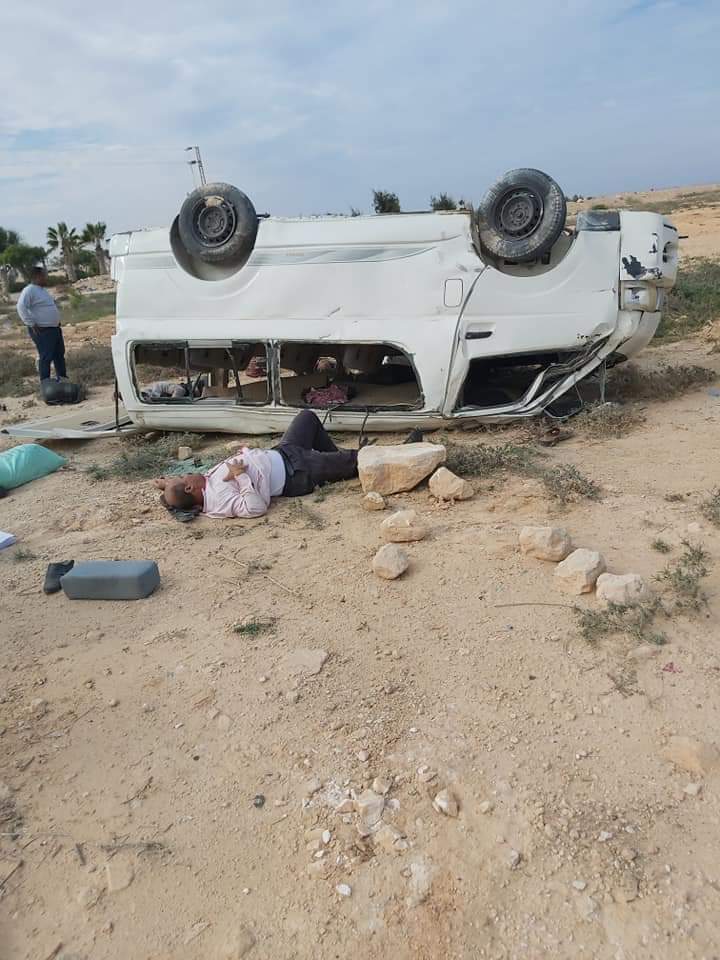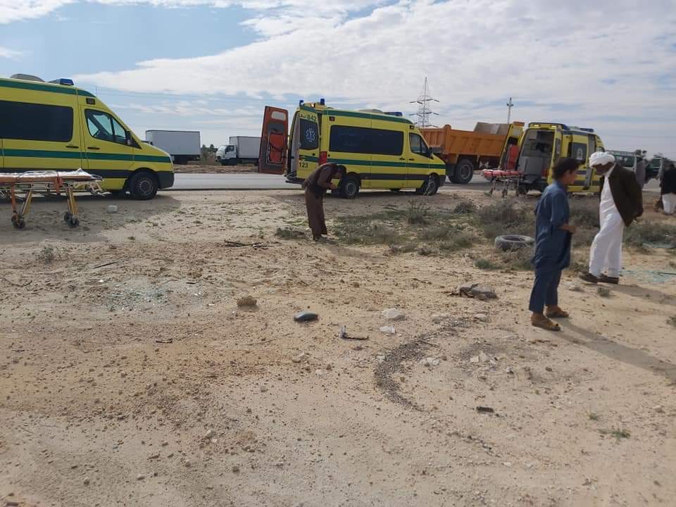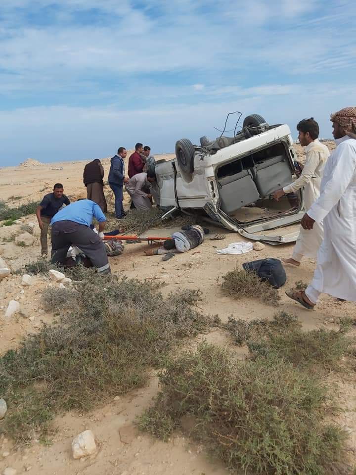 مصرع وإصابة 12 آخرين في انقلاب سيارة بمطروح وإصابة 13 أخرين بالبحيرة