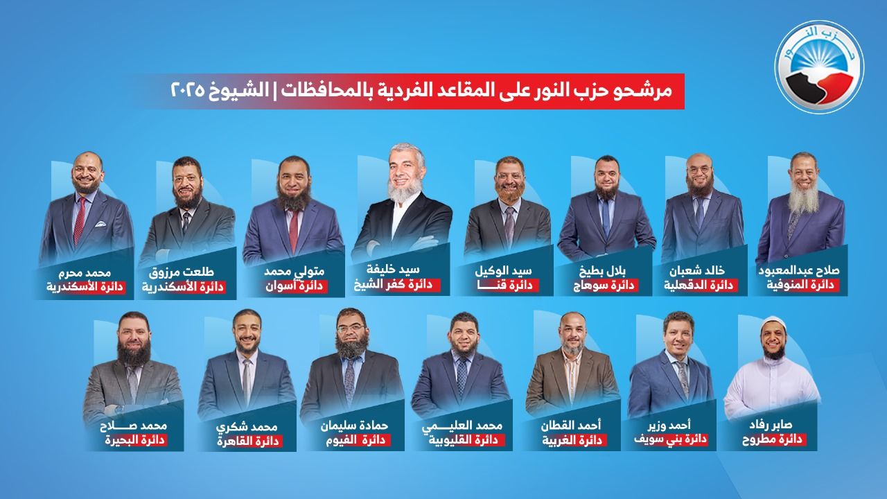 أما قائمة المرشحين لانتخابات مجلس الشيوخ في دائرة بني سويف، فخلت هي الأخرى من اسم مرشح حزب النور أحمد وزير، بعدما ضمت 14 مرشحا.