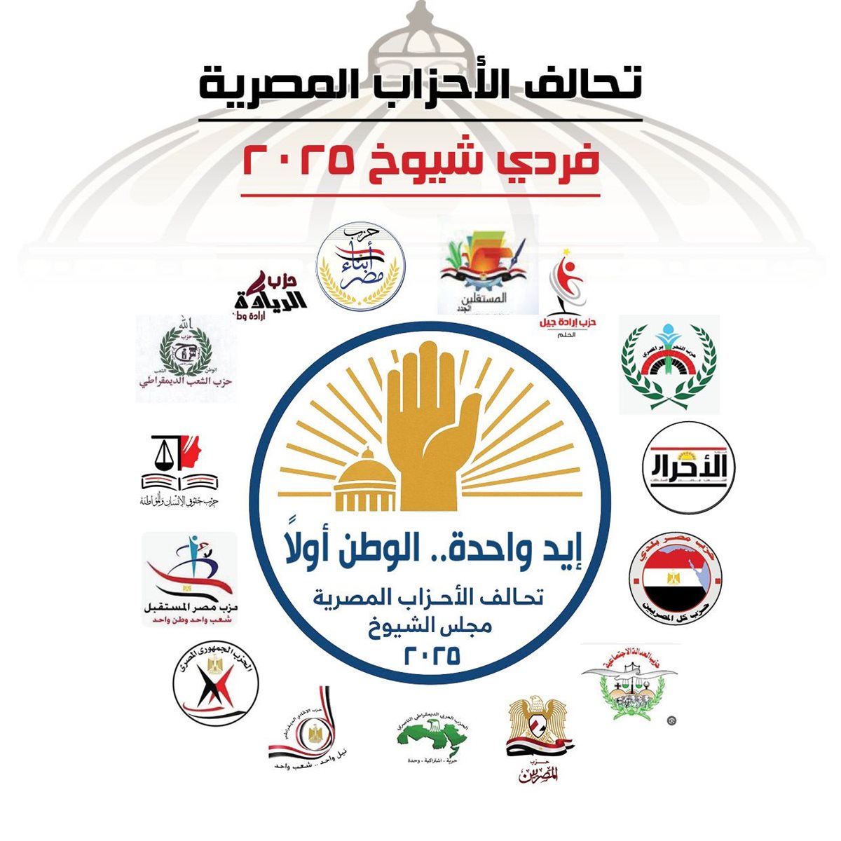 تحركات تنظيمية يشرع فيها تحالف الأحزاب المصرية استعدادا لخوض انتخابات مجلس الشيوخ 2025، حيث يستعد لعقد اجتماعا كبيرا لمجموعة الـ 15 حز الذي يضمه التحالف ويحضرة رؤساء الأحزاب غدا الثلاثاء.