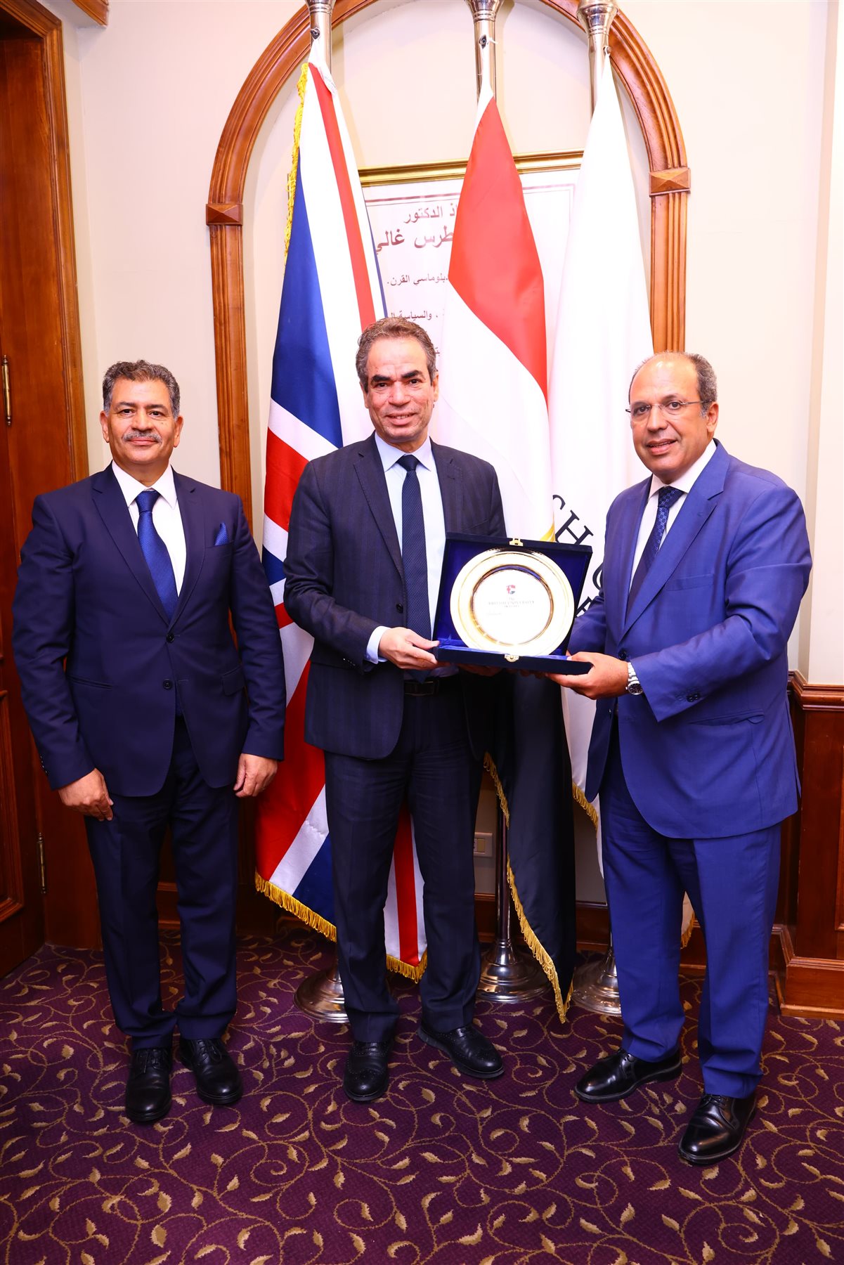 وفي ختام اللقاء، تم الاتفاق على تنسيق آليات التعاون المشترك بين الجامعة البريطانية في مصر والهيئة الوطنية للإعلام، بهدف توظيف الخبرات الأكاديمية المتقدمة للجامعة، والاستفادة من القدرات الإعلامية المتميزة للهيئة ومنصاتها المتعددة، بما يعزز من بناء إعلام وطني مهني ومستدام يخدم المجتمع والدولة والطلاب الدارسين كما قام الأستاذ الدكتور محمد لطفي، رئيس الجامعة البريطانية، والأستاذ الدكتور عادل صالح، عميد الكلية، بتكريم الكاتب أحمد المسلماني وتسليمه درع الجامعة تقديراً لجهوده في تطوير الإعلام الوطني وترسيخ قيم الخدمة العامة.