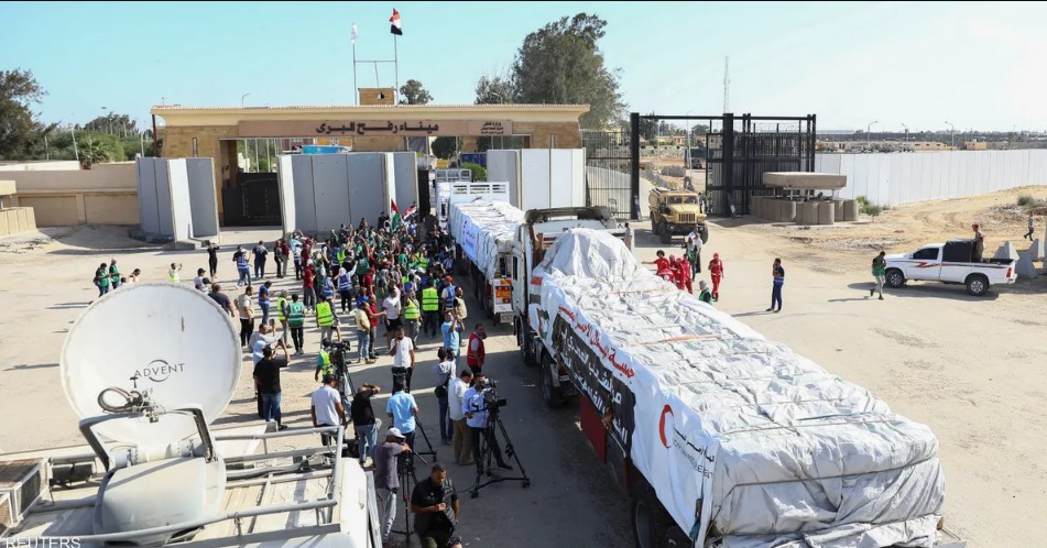 وأضافت القناة، «بدء دخول قوافل المساعدات المصرية إلى قطاع غزة عبر معبر رفح» إلى جانب لقطات تظهر شاحنات عدة في المنطقة الحدودية مع قطاع غزة.