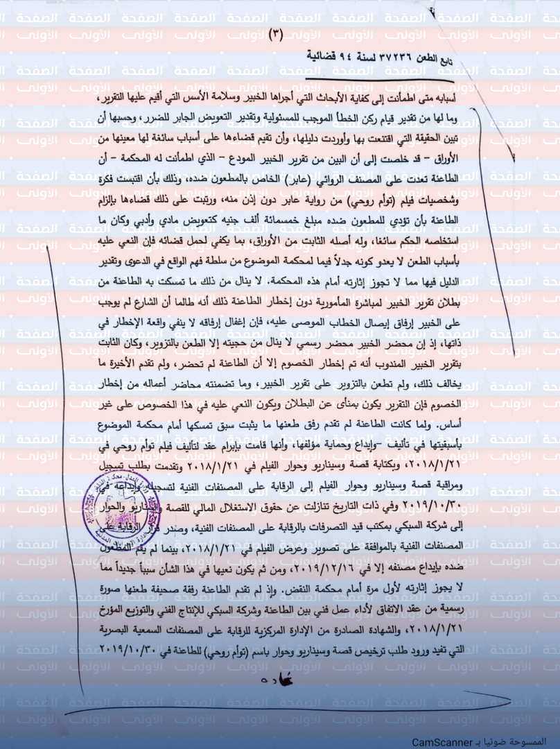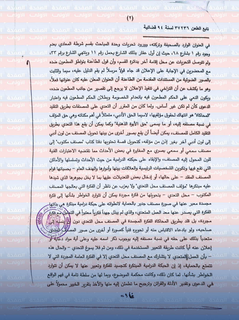 تقرير صحفي حول قرار محكمة النقض في قضية التعدي على حقوق الملكية الأدبية (قضية "توأم روحي")
