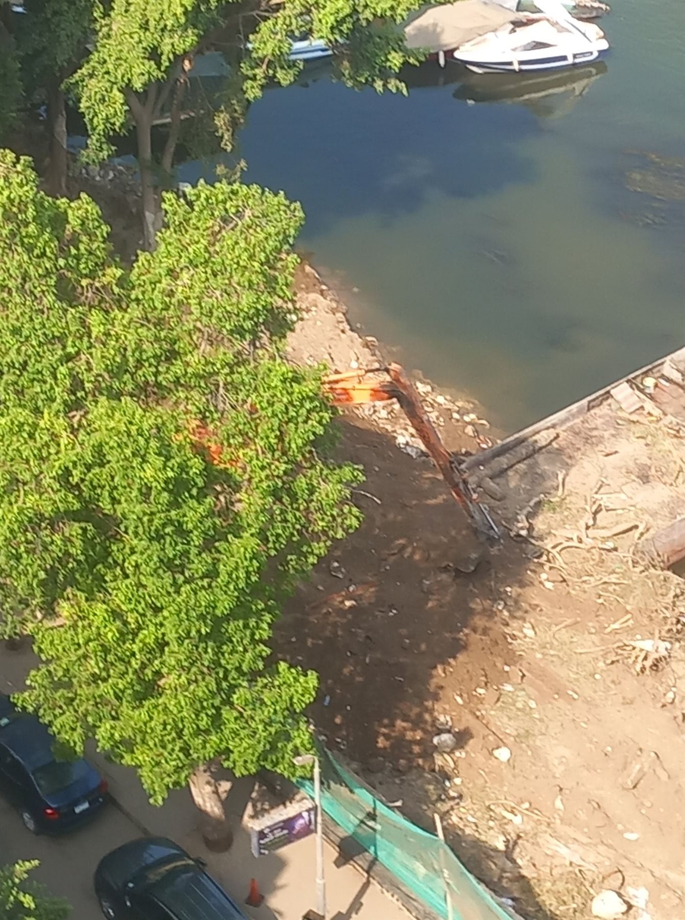 مذبحة أشجار في الزمالك.. المعدات الثقيلة تجرف المساحة الخضراء على شاطئ النيل