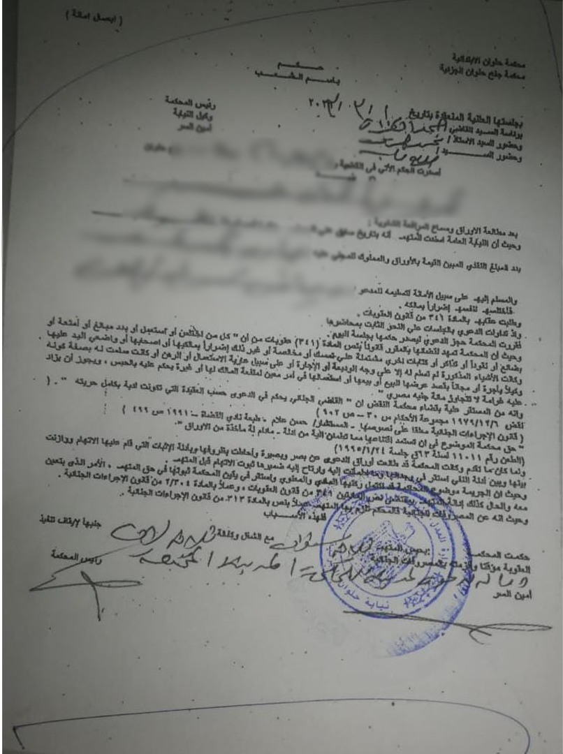 وكذلك القضية رقم 4061 لسنة 2023 والتى قضت فيها محكمة جنح حلوان بالسجن سنة مع الشغل والكفالة ، إلى جانب القضية رقم 25500 لسنة 2022 والتى صدر فيها الحكم غيابيا بالسجن 3 سنوات، والقضية رقم 20403 لسنة 2023 والمدان فيها بالتبديد.